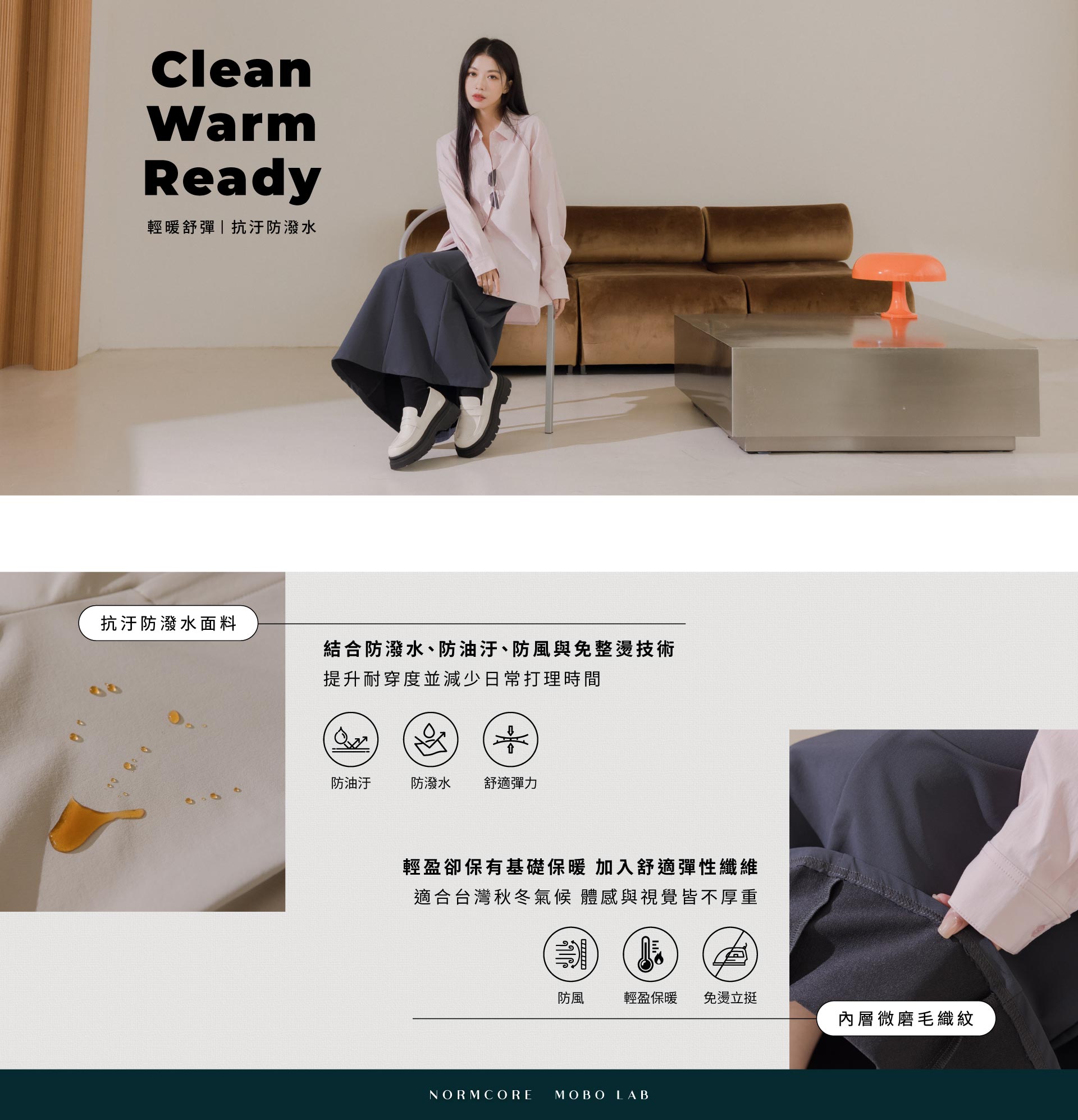 輕暖舒彈-防潑水立體輪廓率性繭型褲