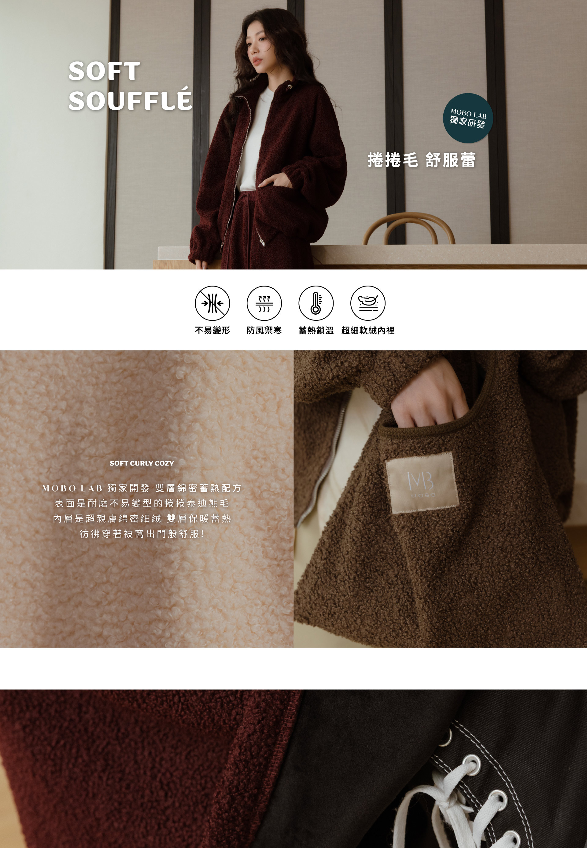 捲捲毛舒服蕾-小立領拉鍊外套