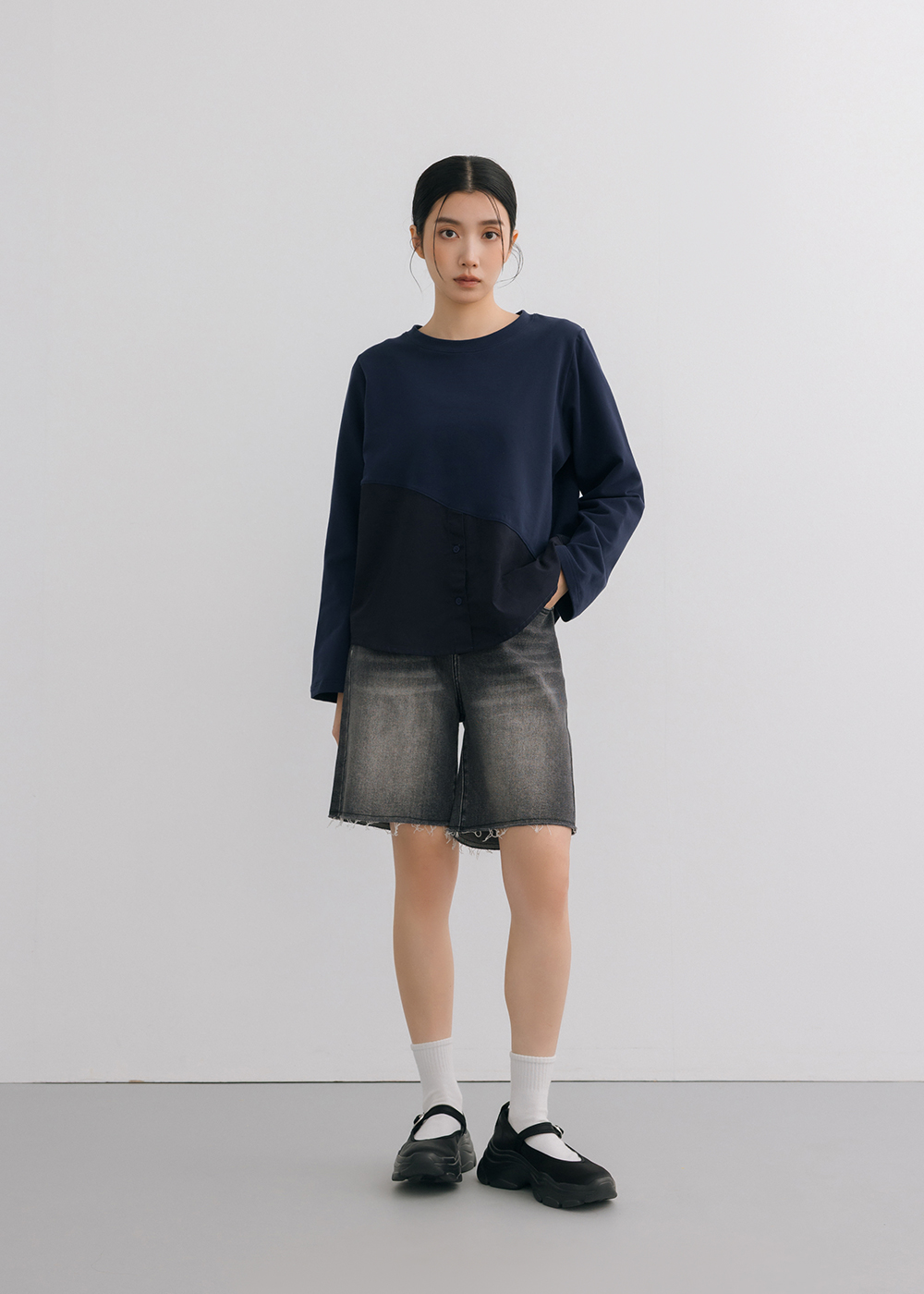 絨面拼接設計上衣 01014370 加入願望清單 加入願望清單