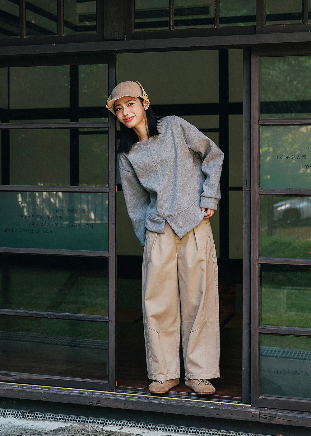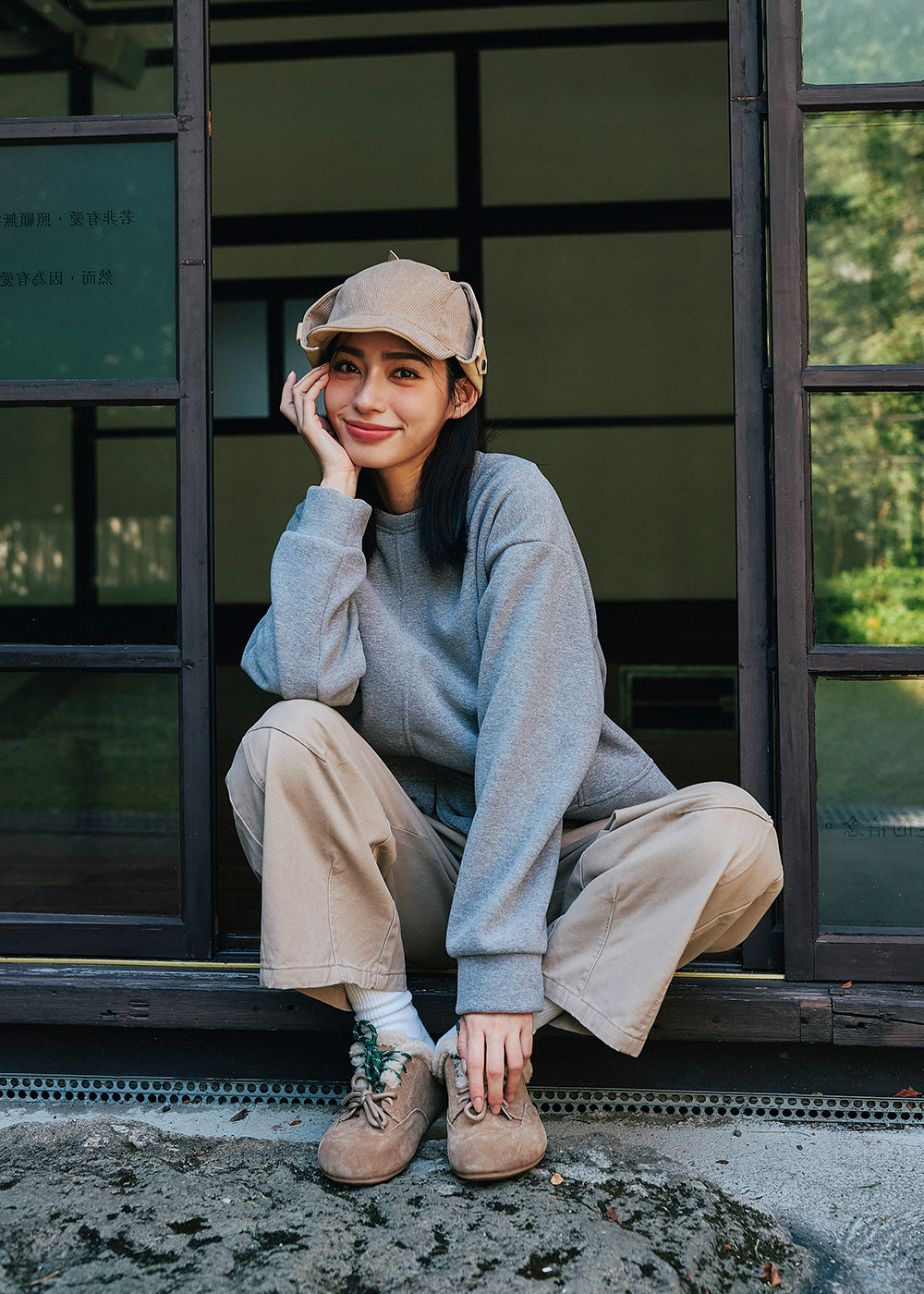 溫暖的絨毛面感下擺不對襯小開叉設計