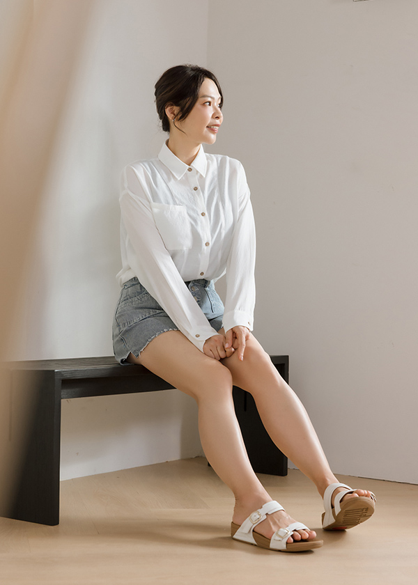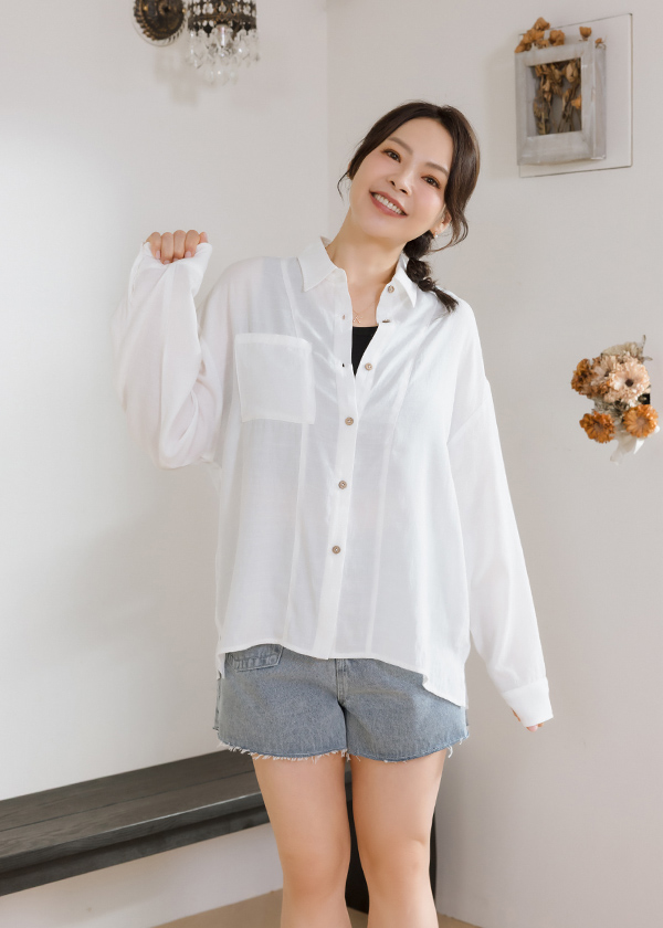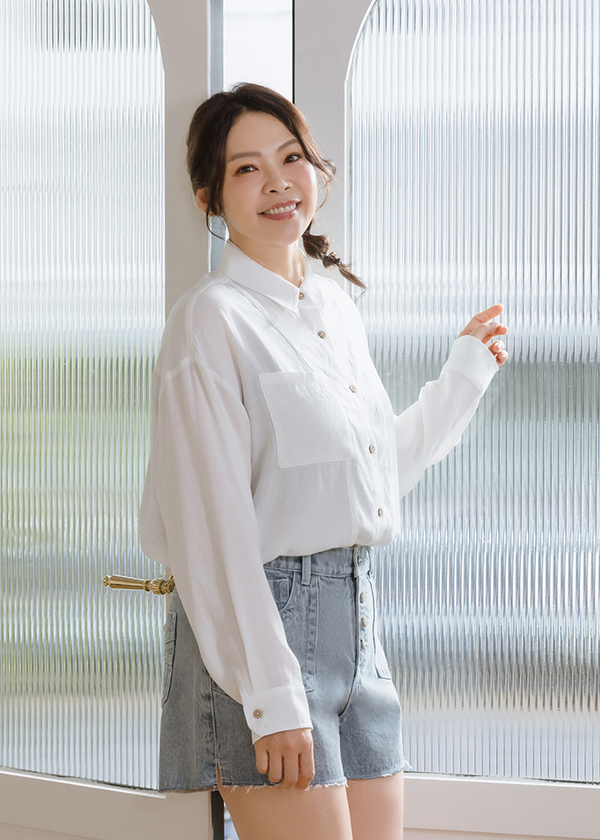 木紋鈕釦裝飾寬鬆版型