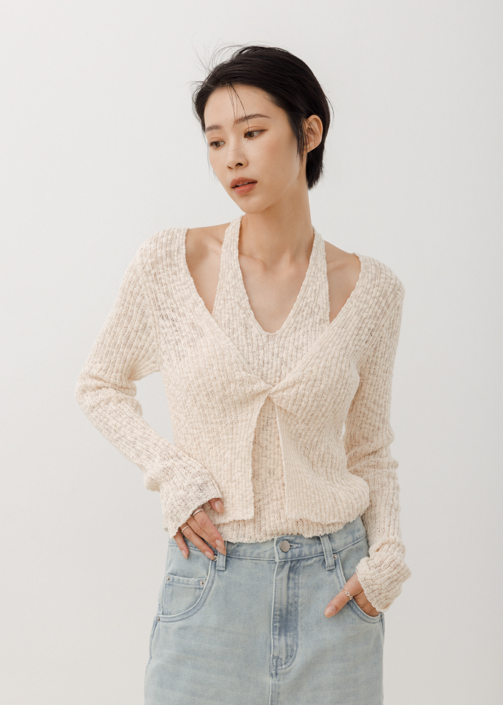 扭結設計結合假兩件層次