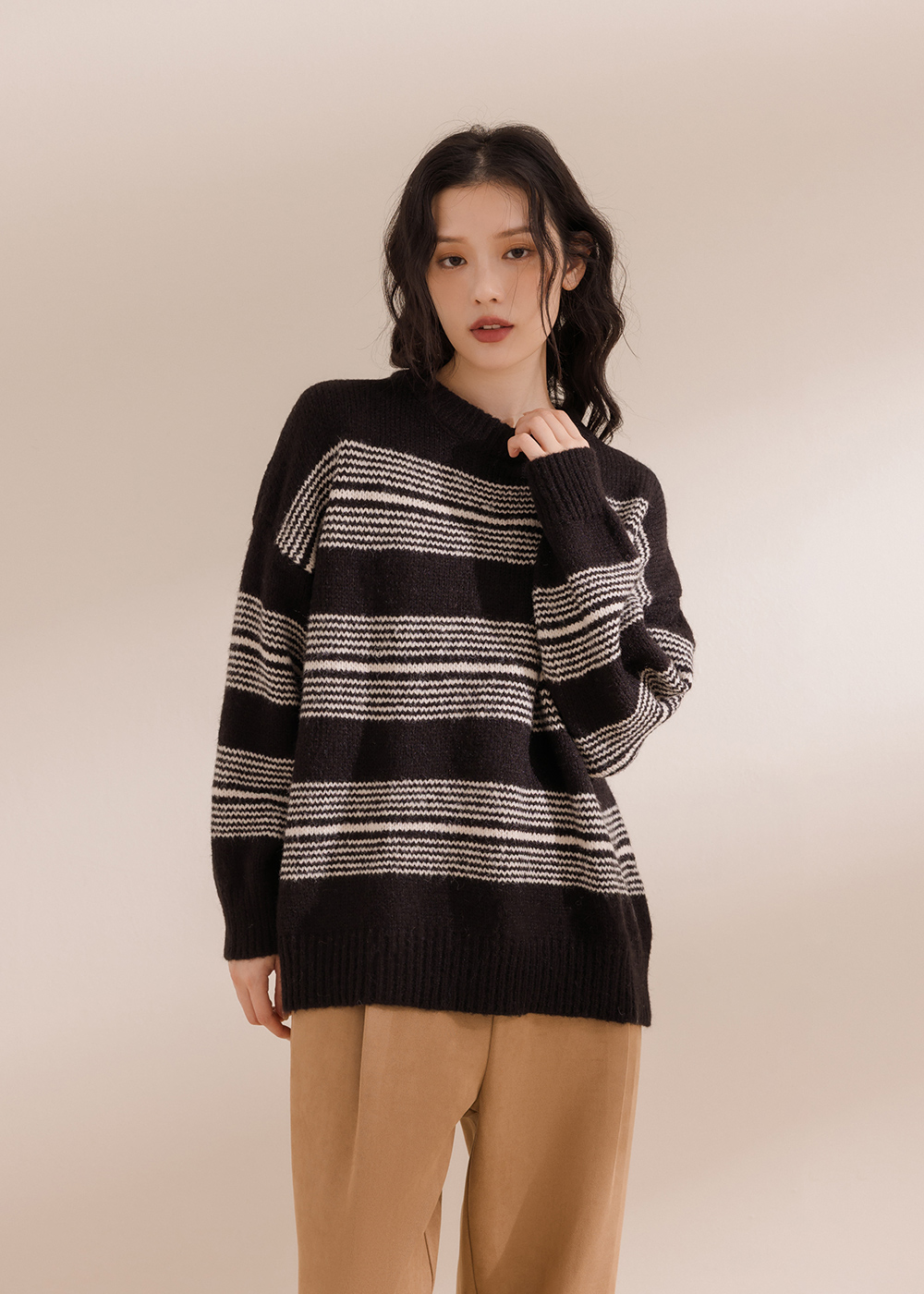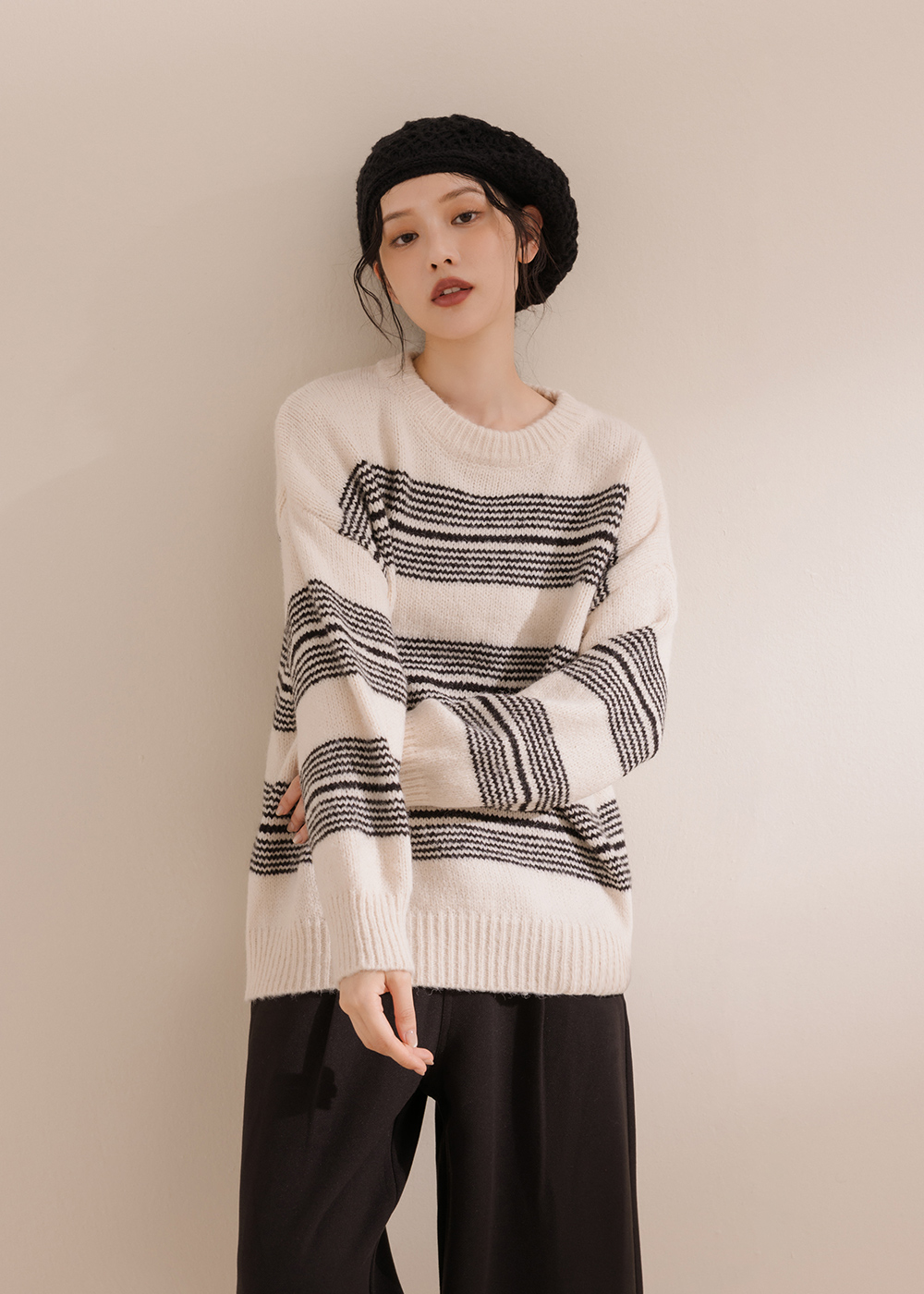 "選用親膚紗線寬鬆版型