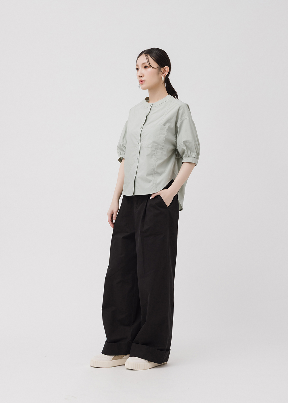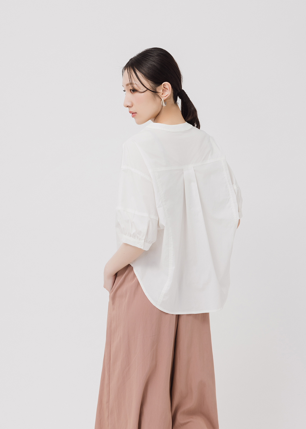 五分袖長下擺弧形開岔