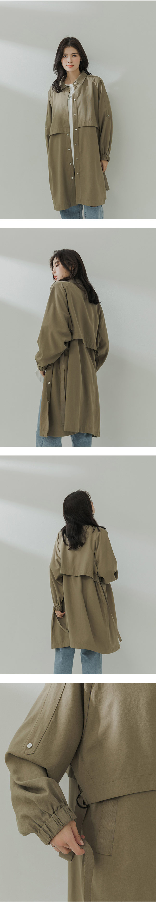 "柔軟垂墬面料長版風衣版型修飾拉長身型