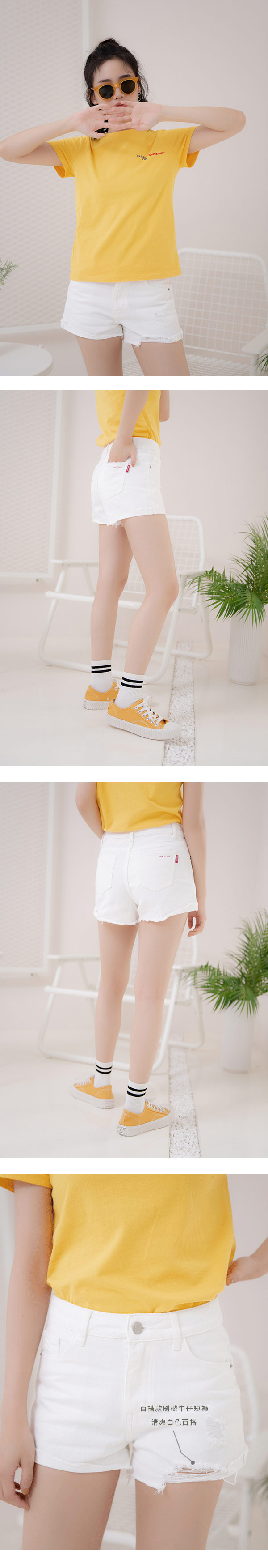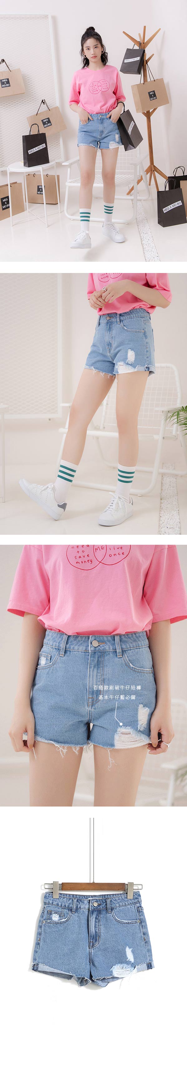 百搭款刷破牛仔短褲,基本牛仔藍必備,