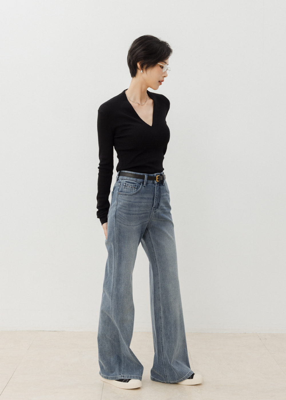 高腰剪裁/展現優雅線條