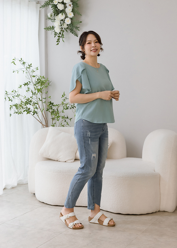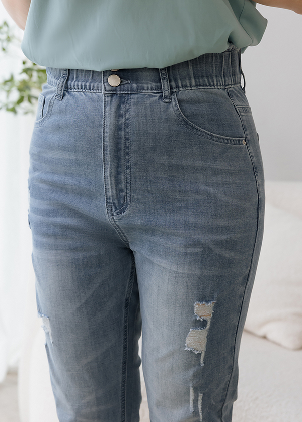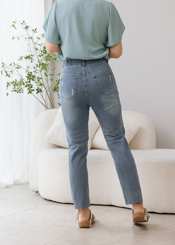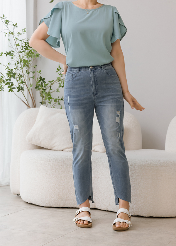 颯颯舒爽斜切九分單寧褲 03050712