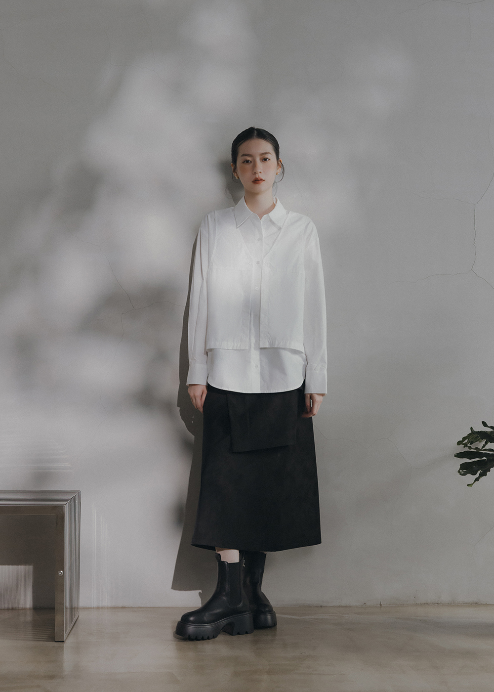 後片開衩設計/挺感布料/修飾身型