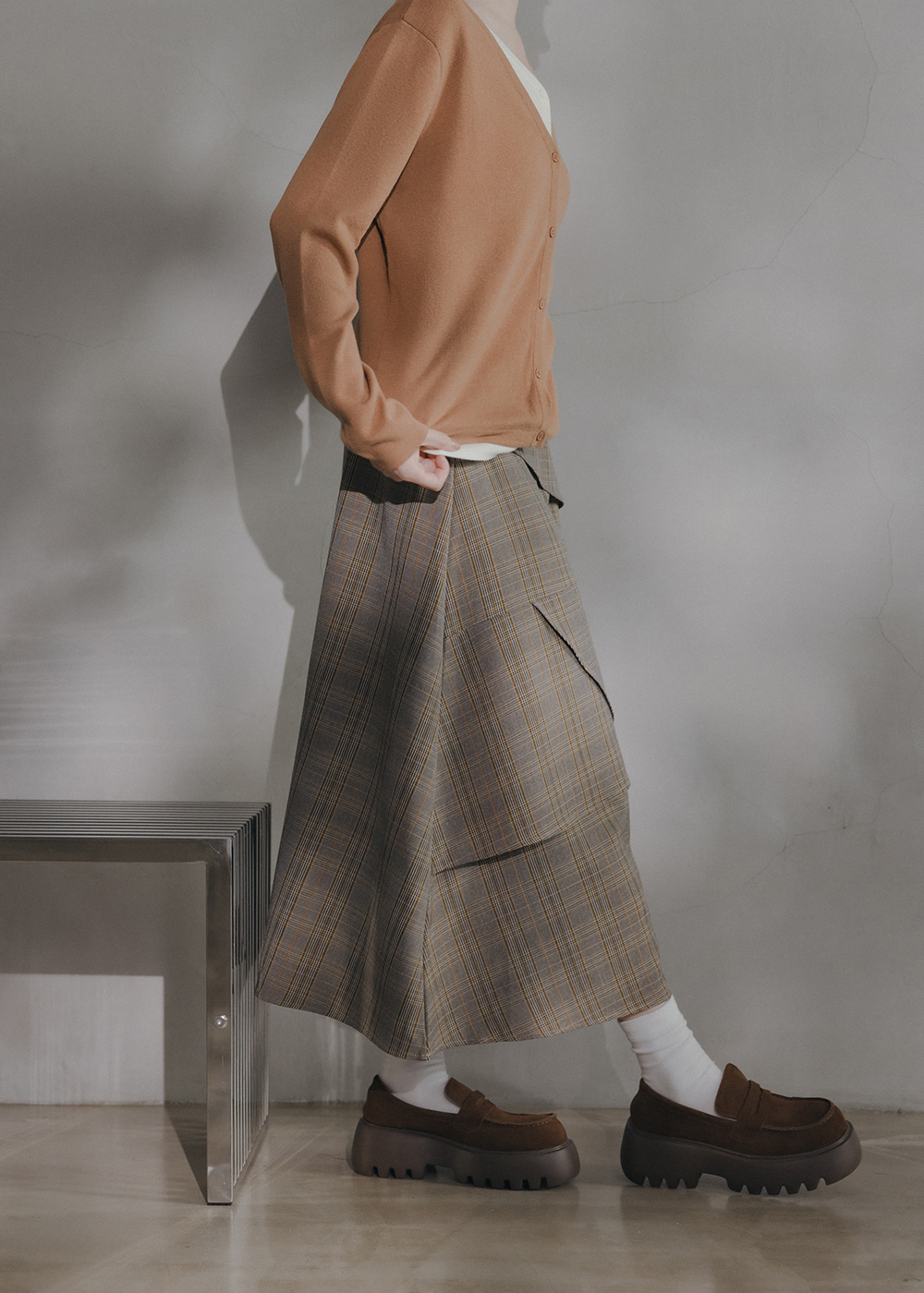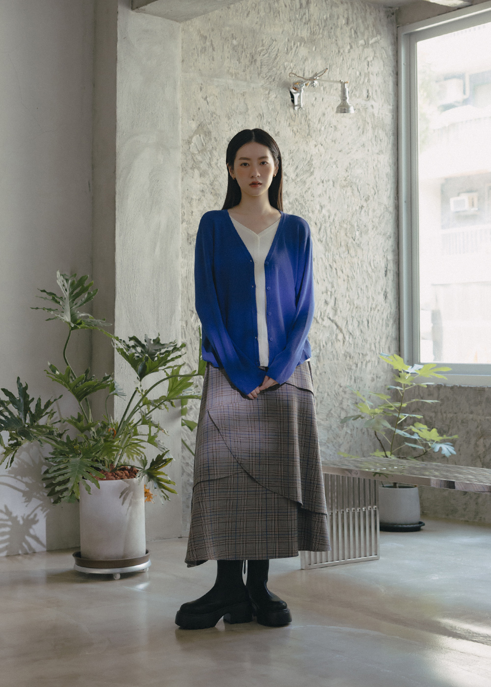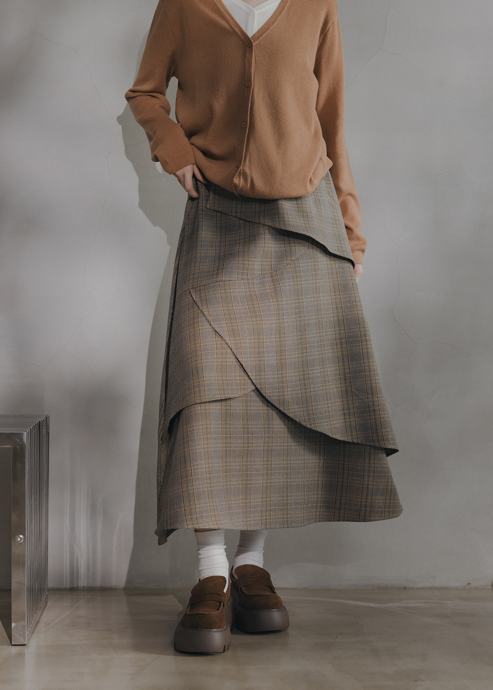 時髦設計感荷葉拼接格裙 08020579 加入願望清單 加入願望清單