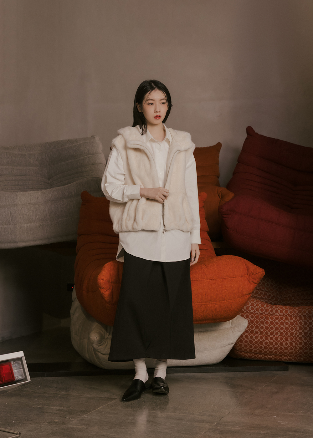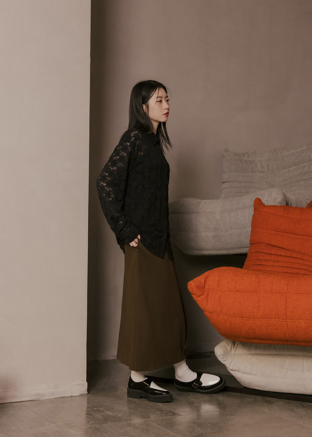 後中隱形拉鍊/沉穩質感色調