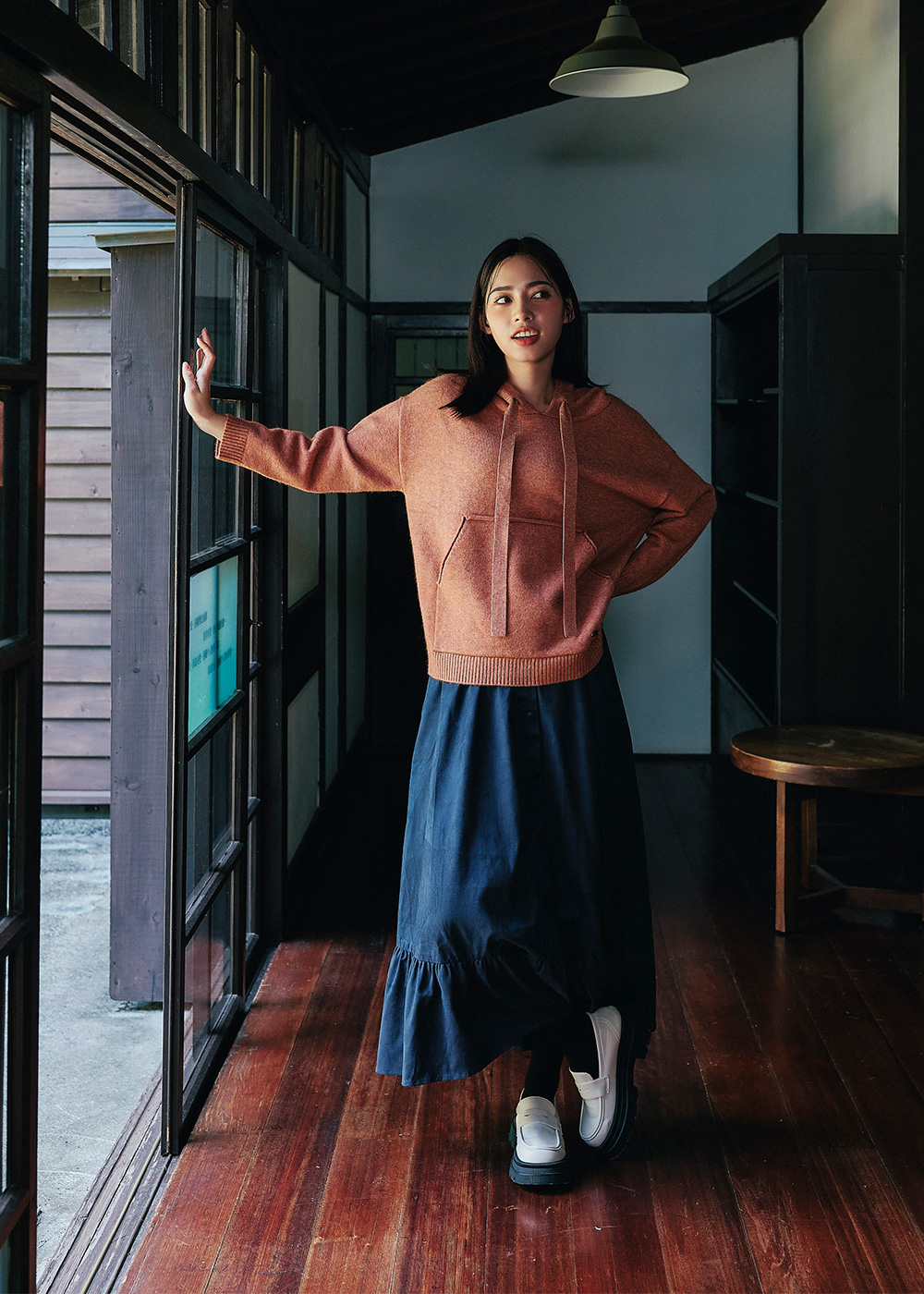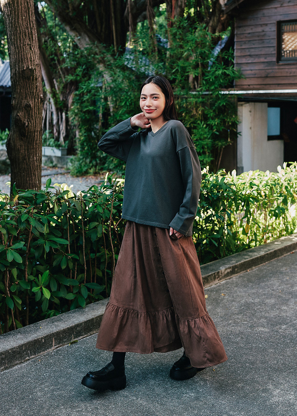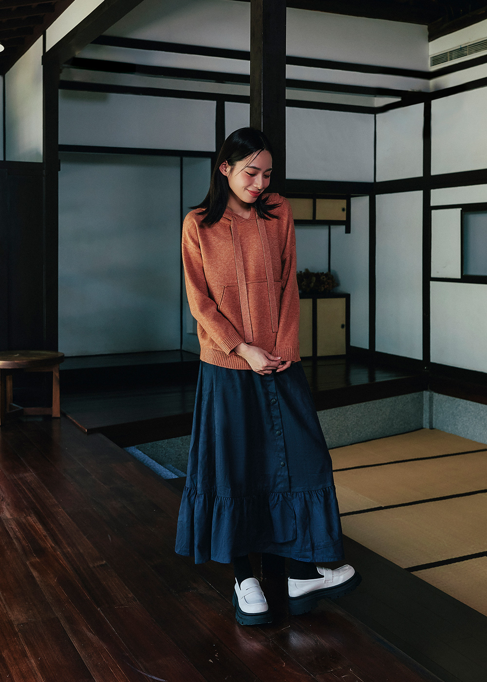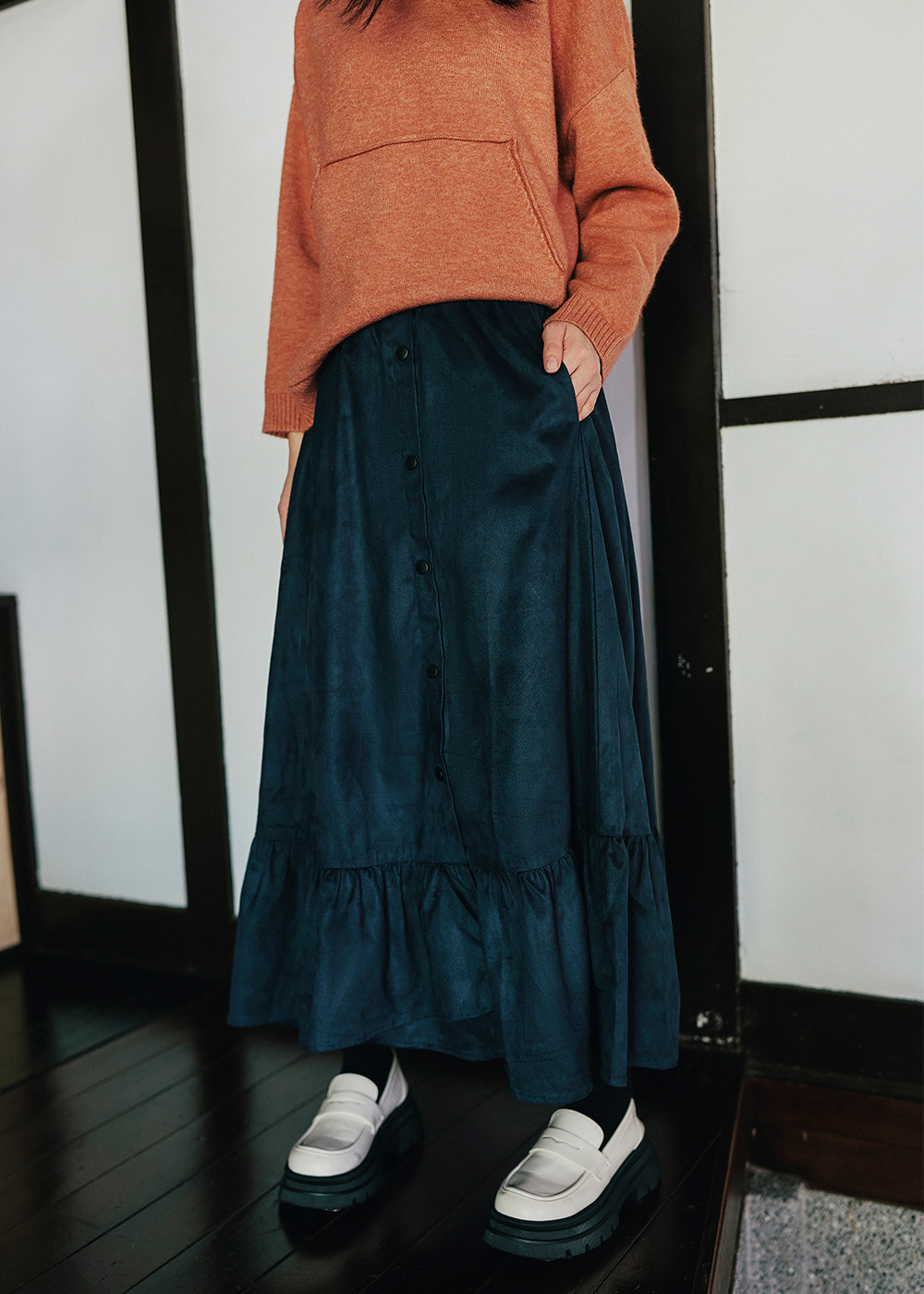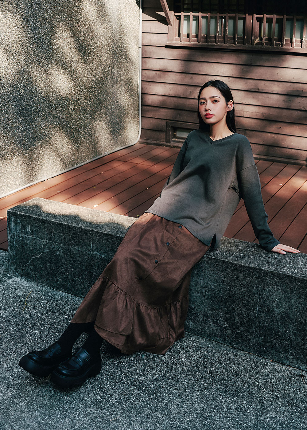 下擺不對襯荷葉穿搭長版毛衣也好看"