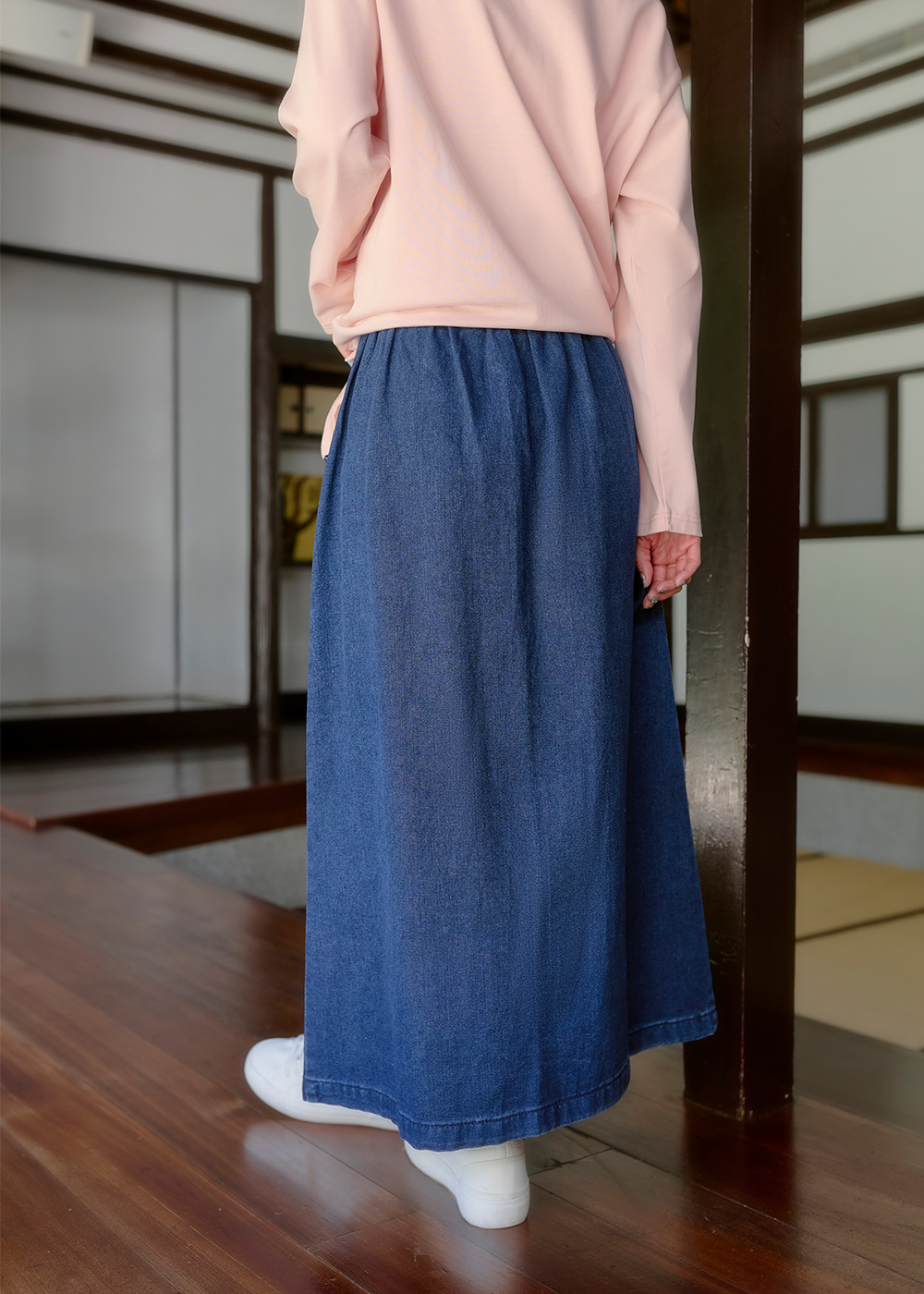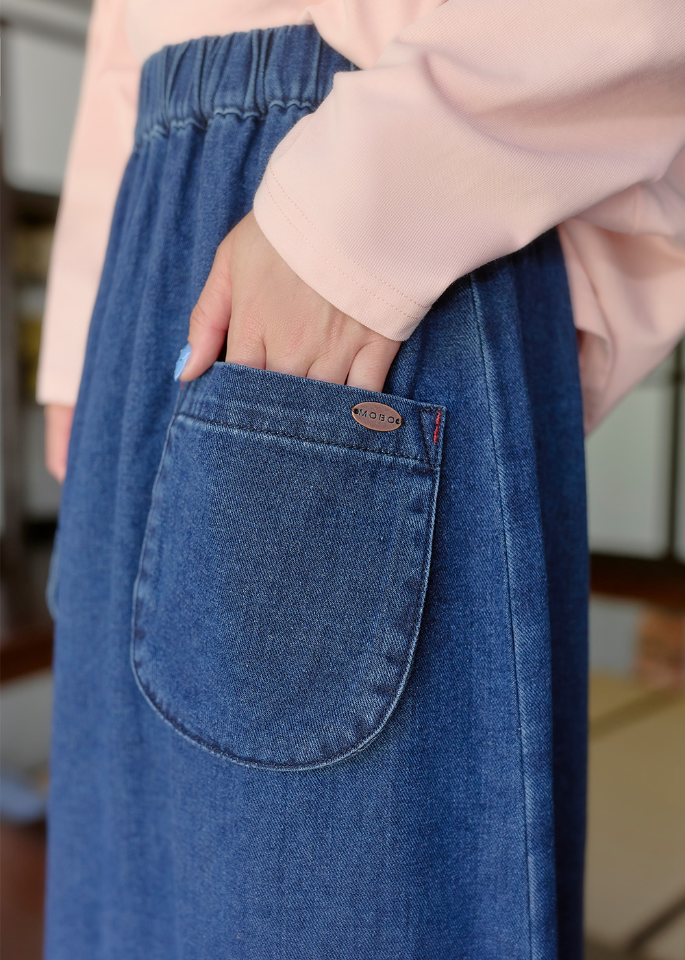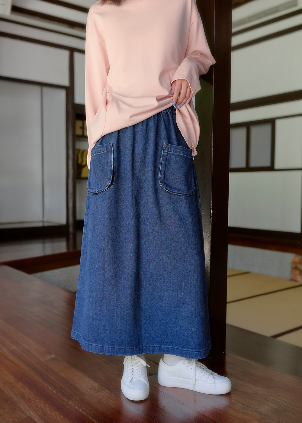 經典水洗丹寧色A襬版型舒適全腰鬆緊