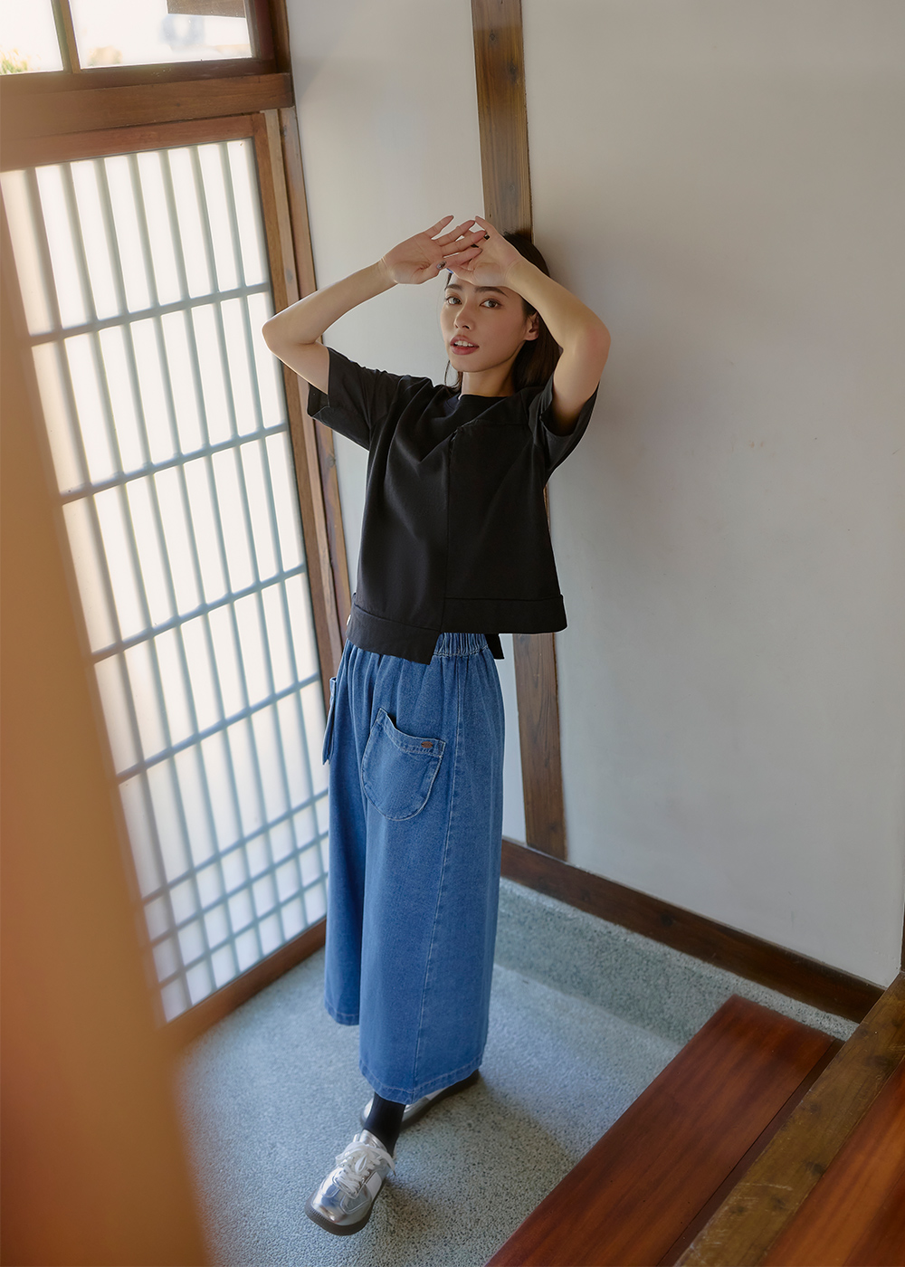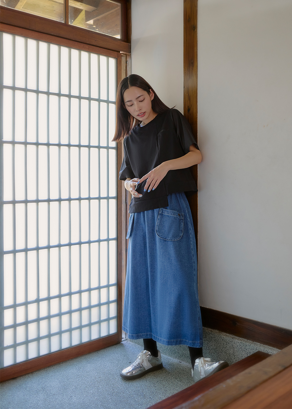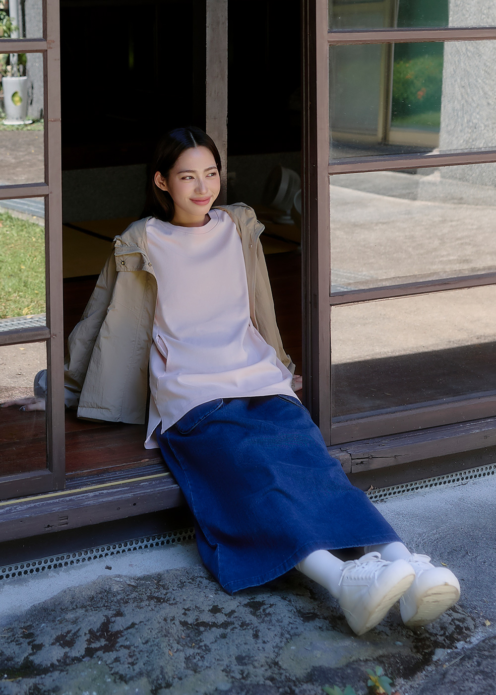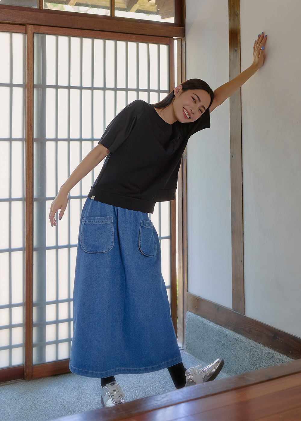 經典水洗丹寧色A襬版型舒適全腰鬆緊