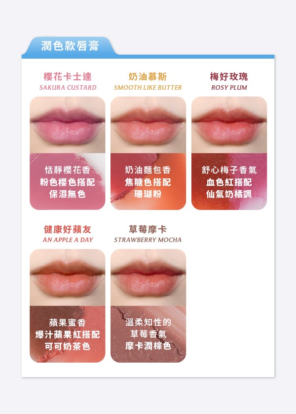 同時為唇部進行補水、鎖水、保水三重機制,打造專屬唇色,閃耀水潤光澤。
