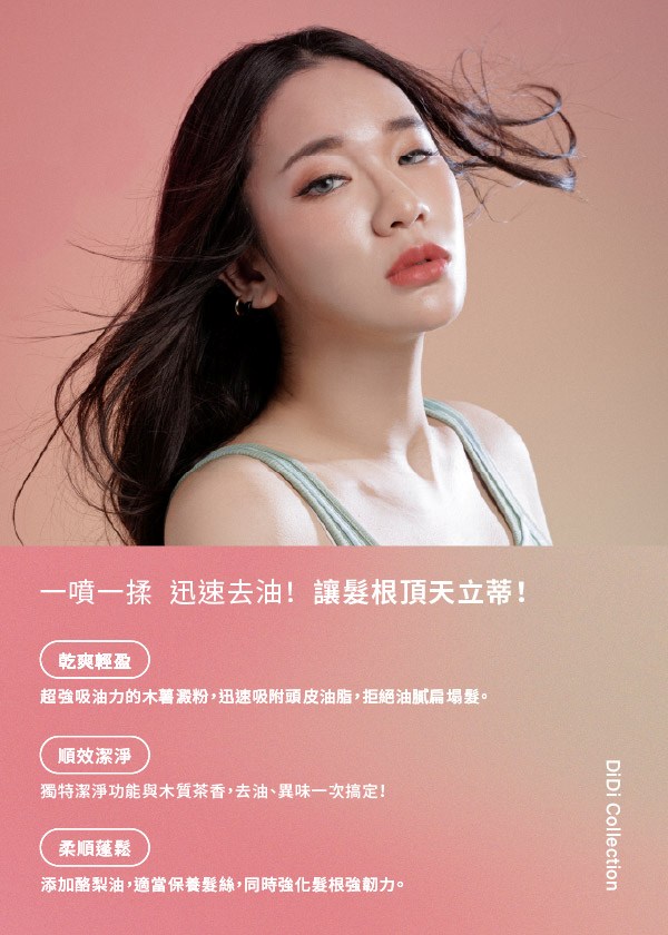 "超強吸油力的極細緻木薯澱粉,快速吸附頭皮油脂,保持頭髮乾爽輕盈,同時添加酪梨油成分