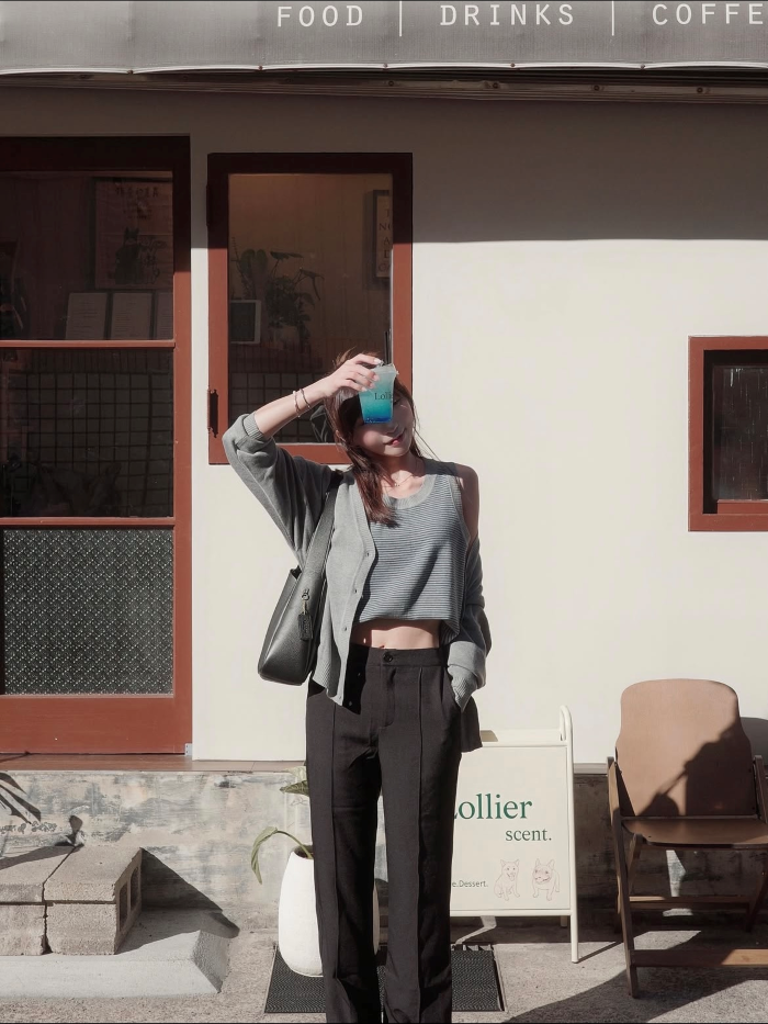 穿搭重點:日常兩件式針織上衣,長腿顯瘦修長褲
