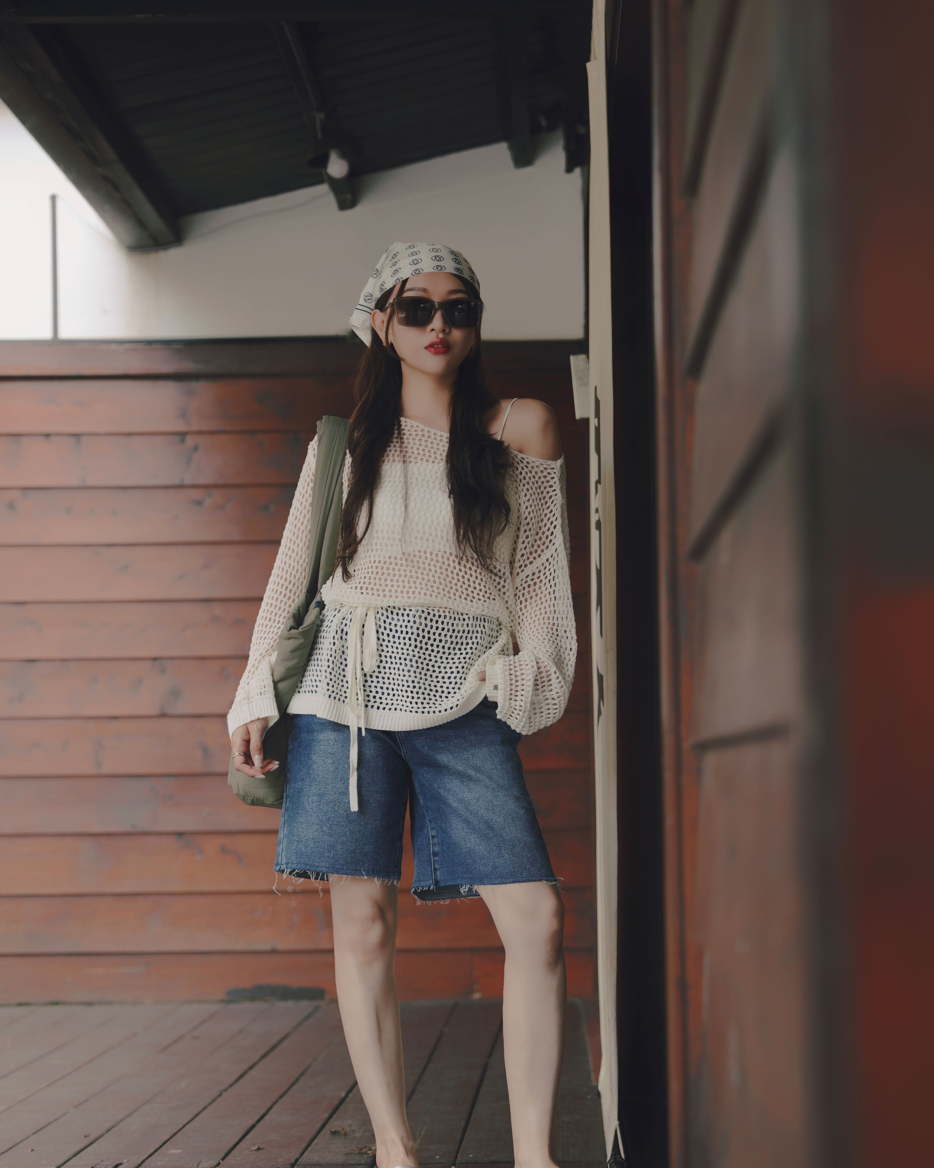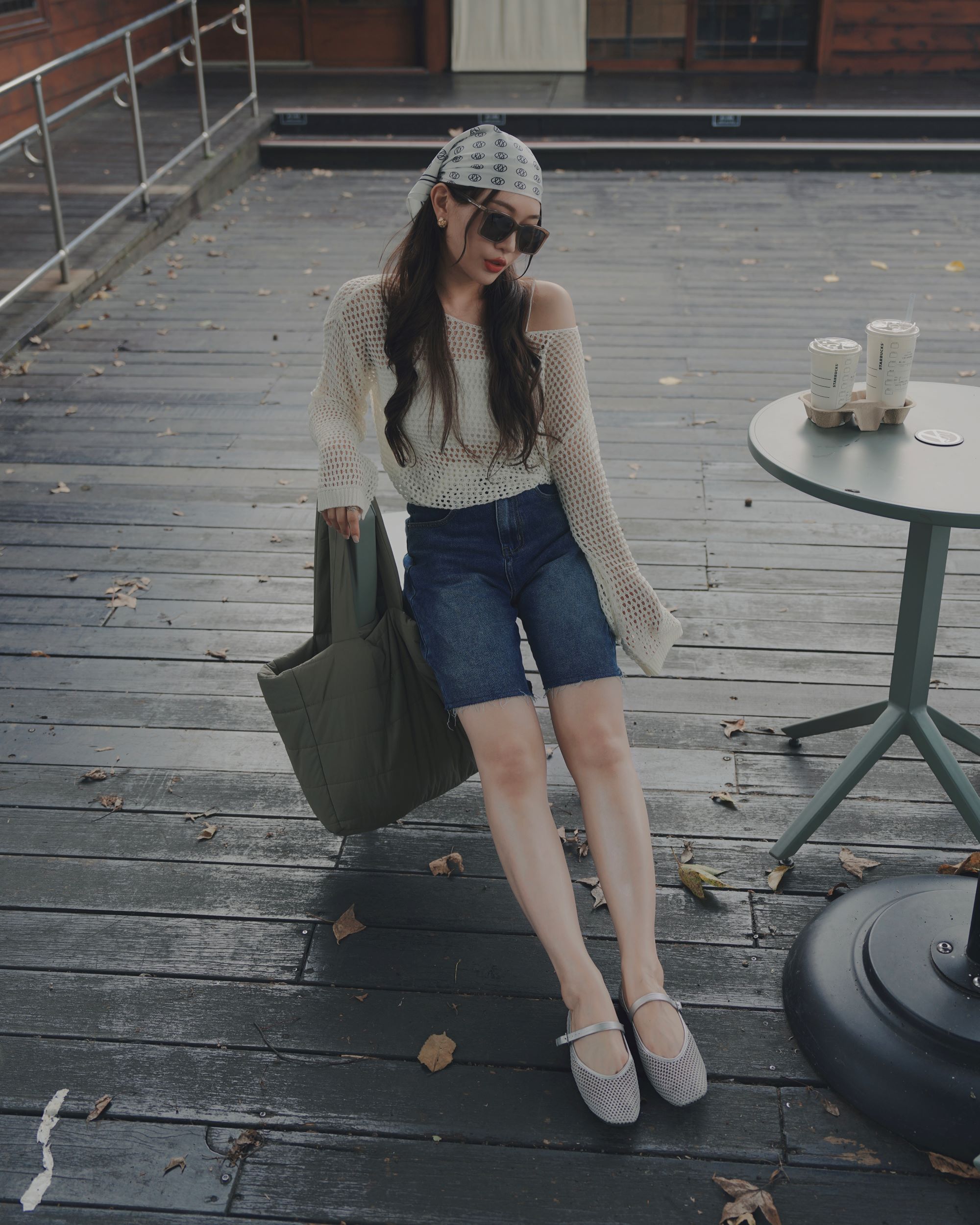穿搭重點:M系列小銀牌鋪棉個性包,M系列小男友水洗感五分短褲,M系列慵懶一字領針織上衣
