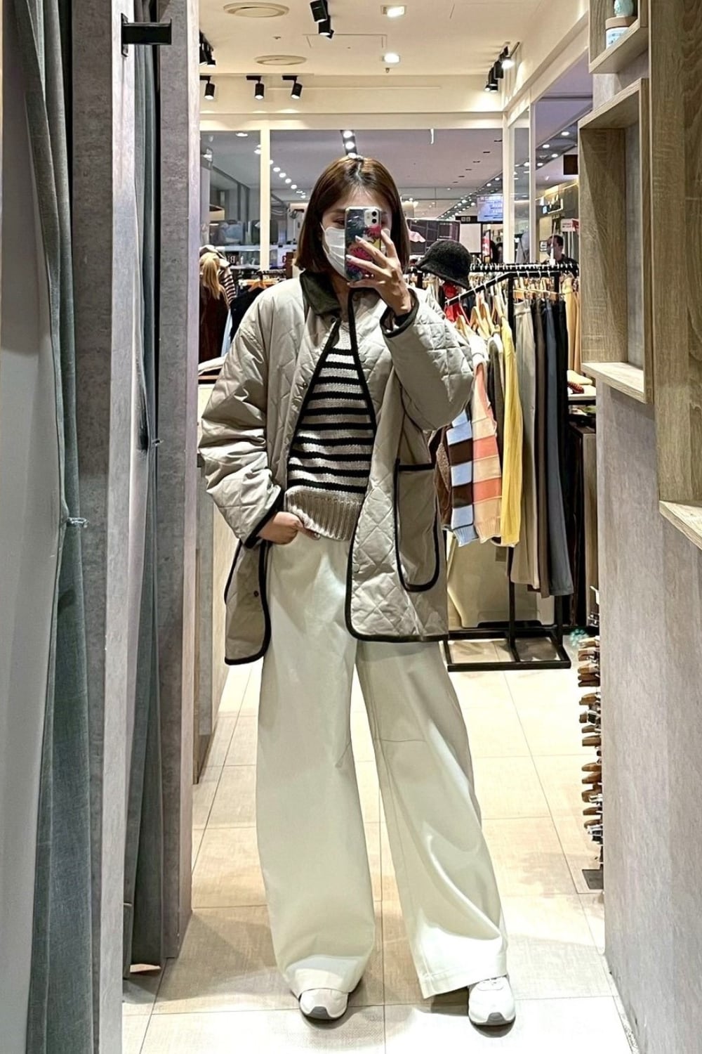 穿搭重點:rehearsal設計水洗電繡上衣、復古菱格燈芯絨立領鋪棉外套、質感縮口有型皮背心、條紋圓領針織毛衣、天絲棉質感廓型長褲