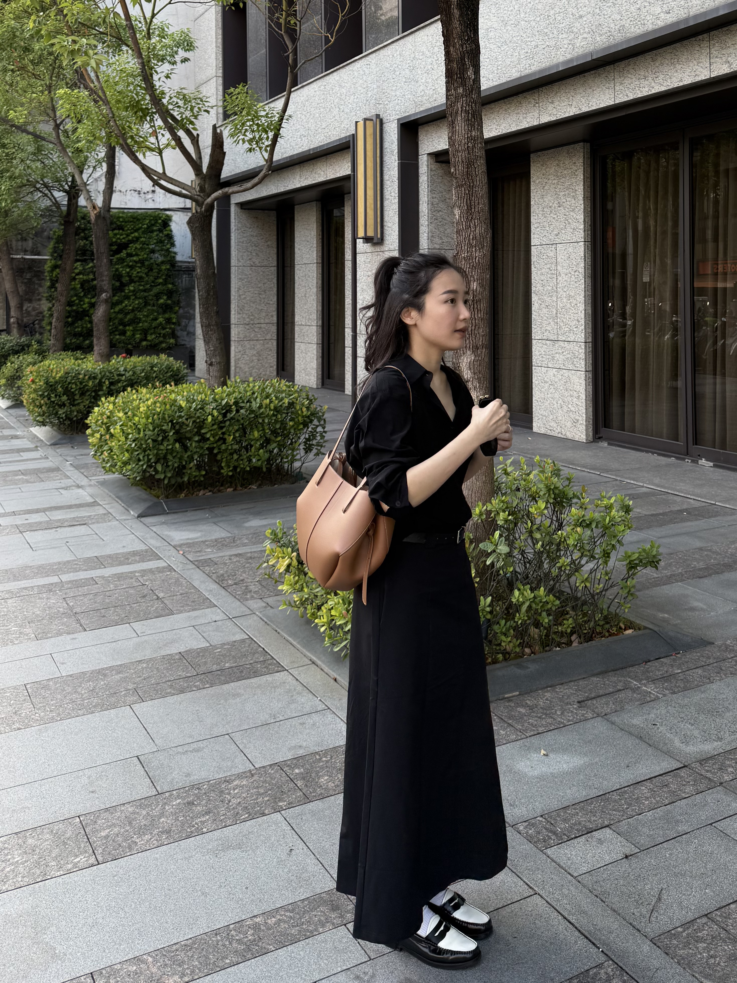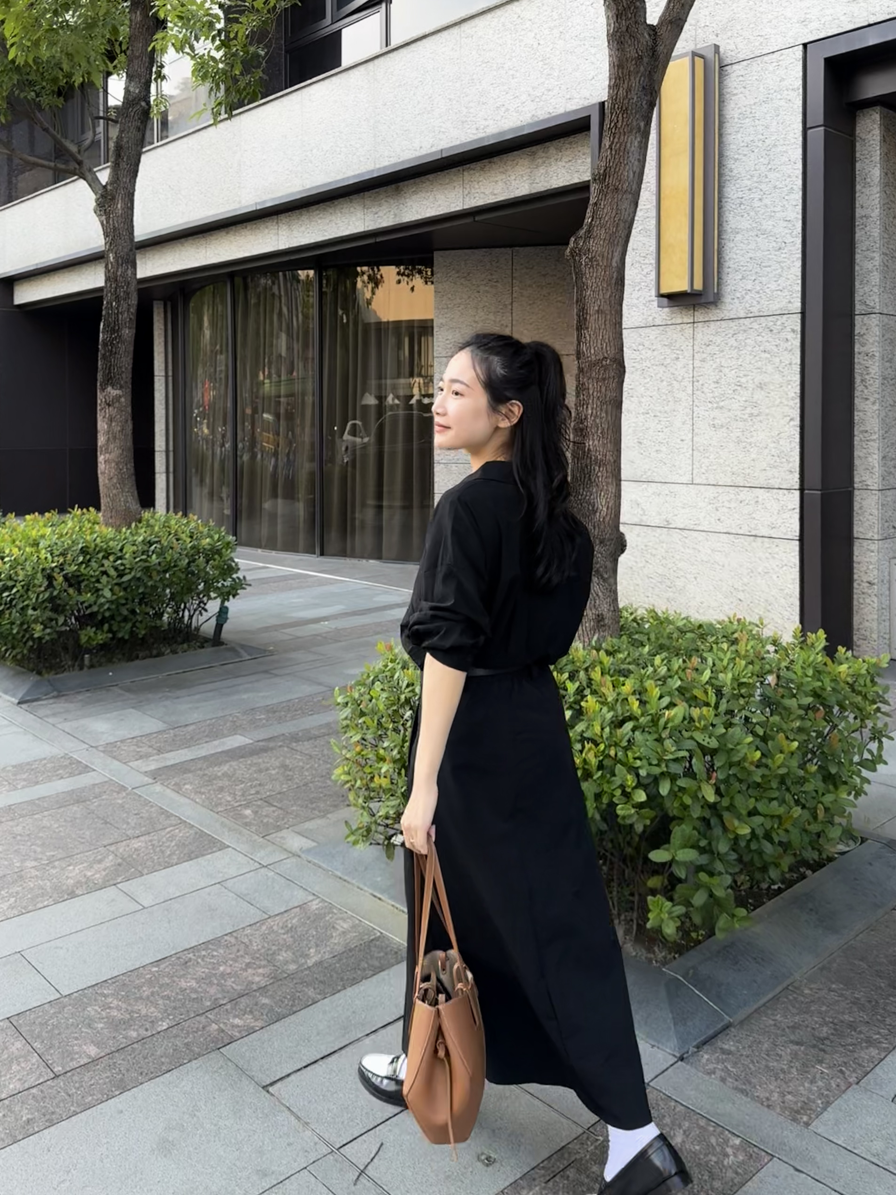 穿搭重點:輕暖舒彈-防潑水修身剪裁長裙,Clean&Tidy俐落有型防汙襯衫