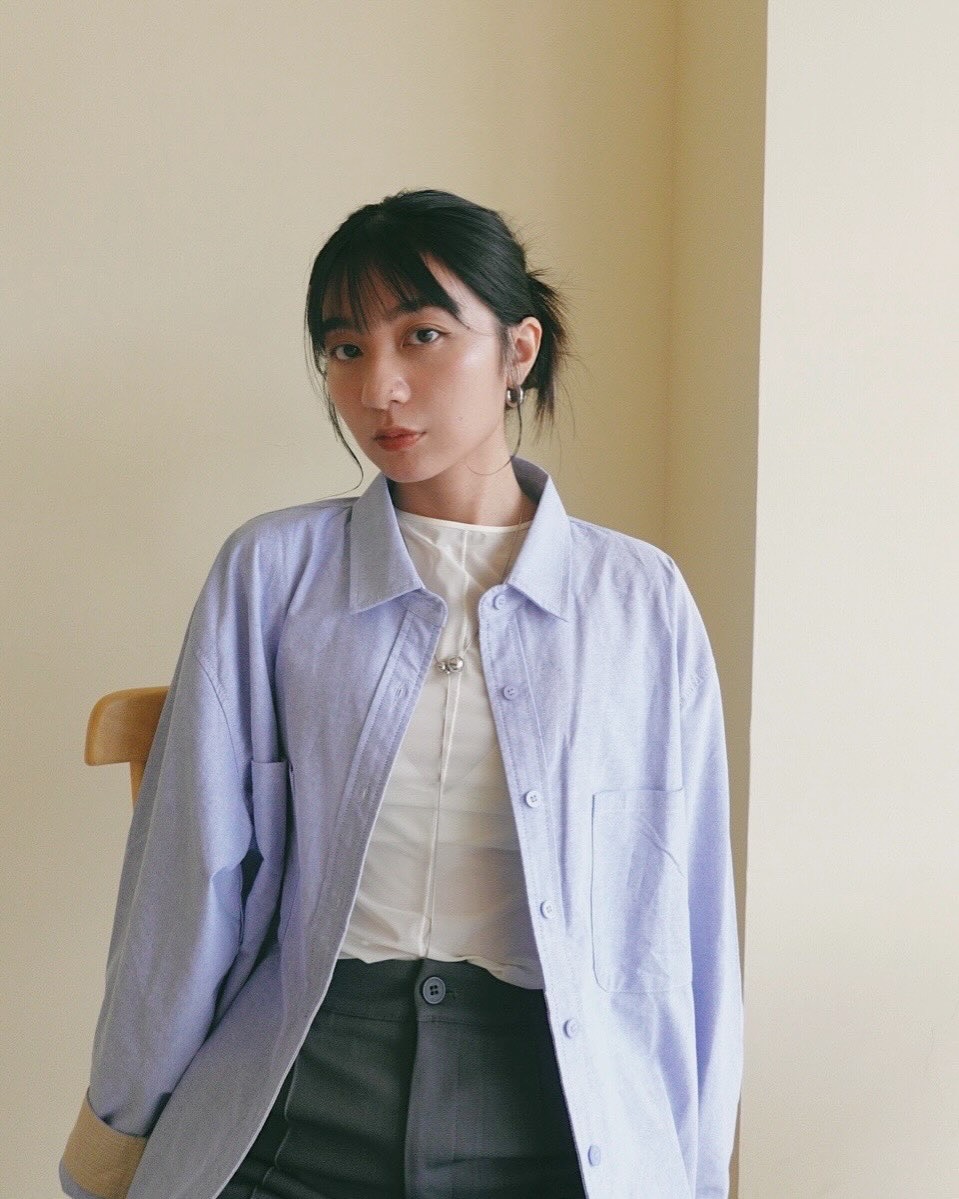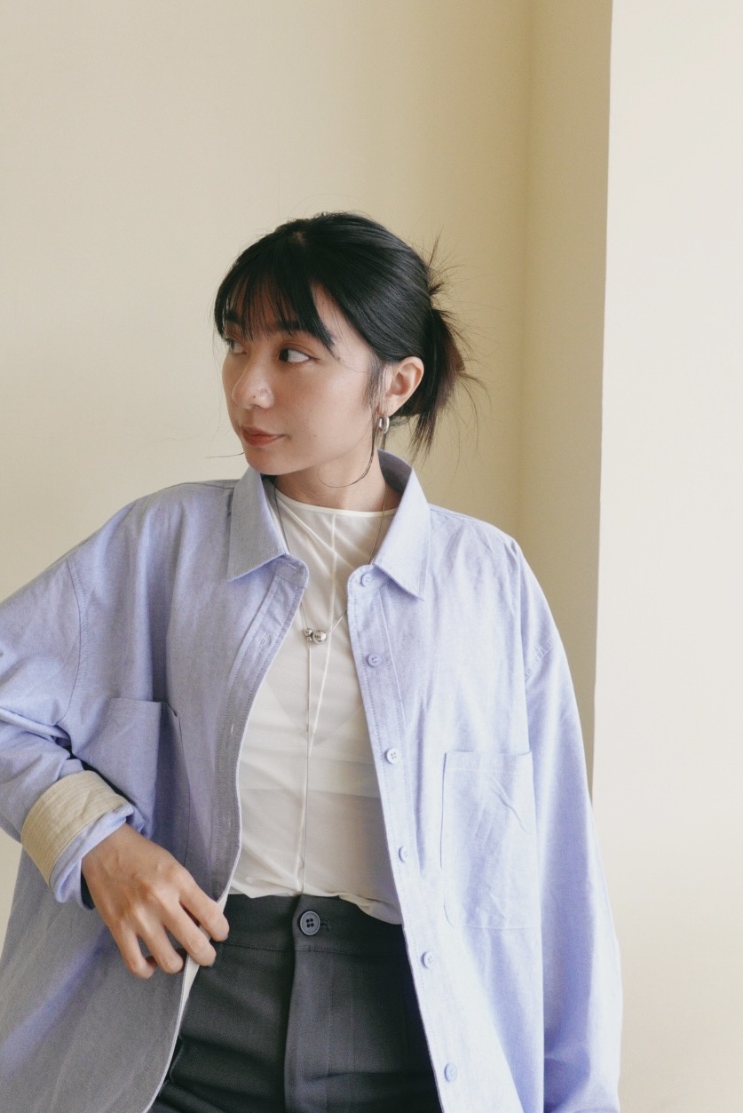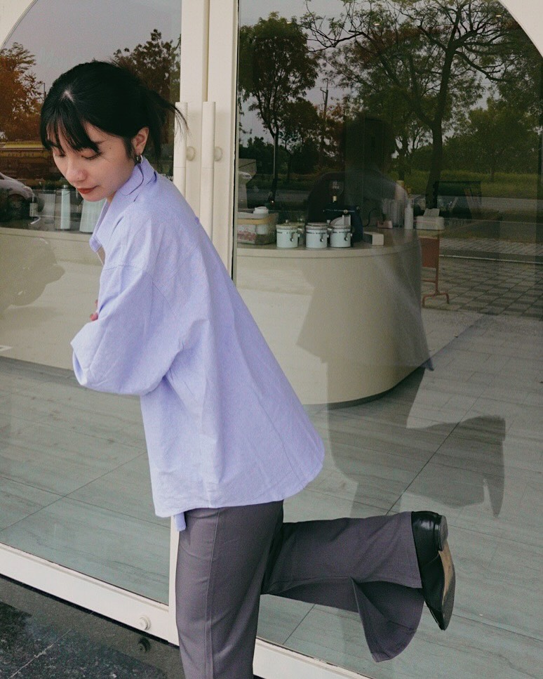 穿搭重點:長腿顯瘦修長褲 條紋點綴拼接襯衫