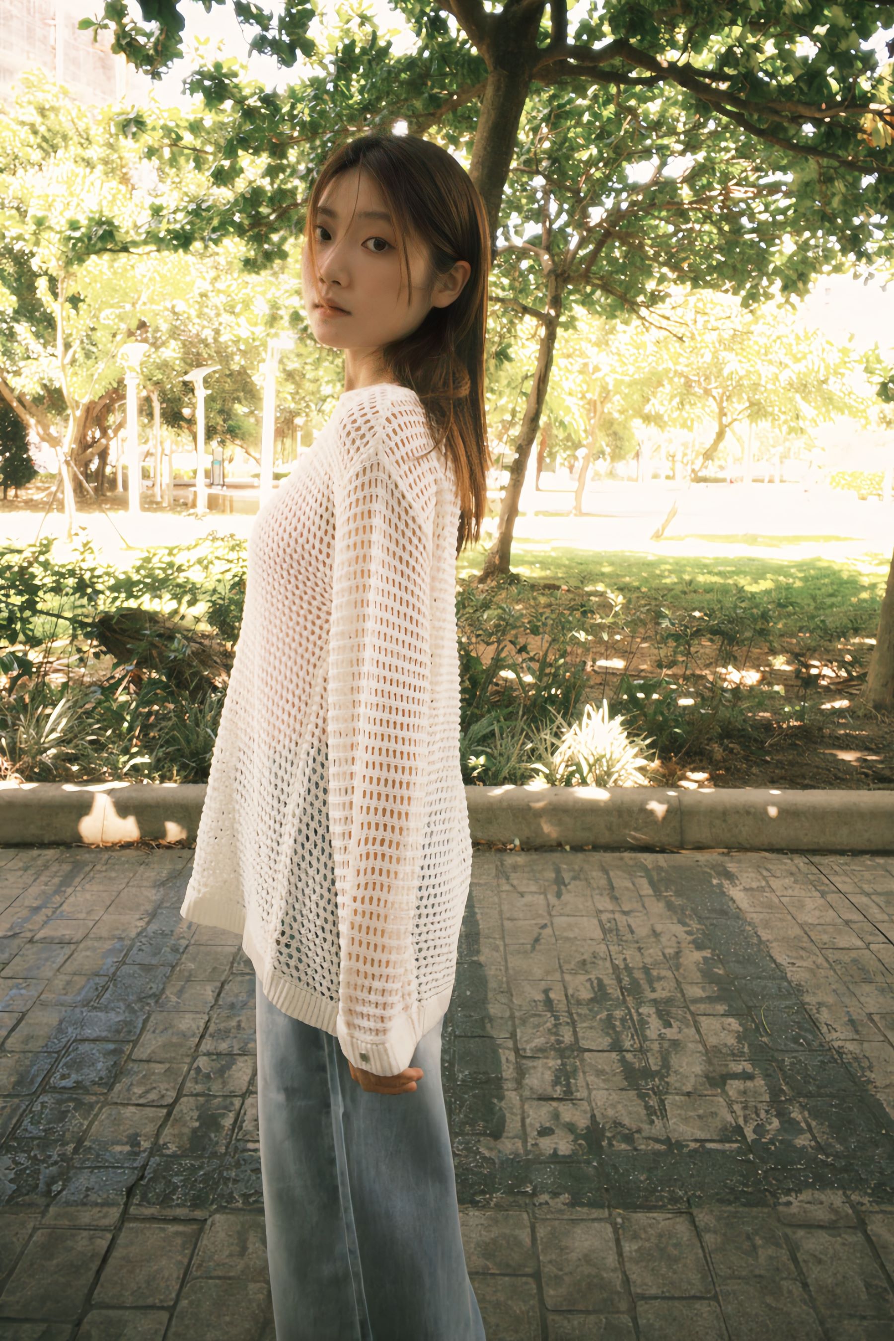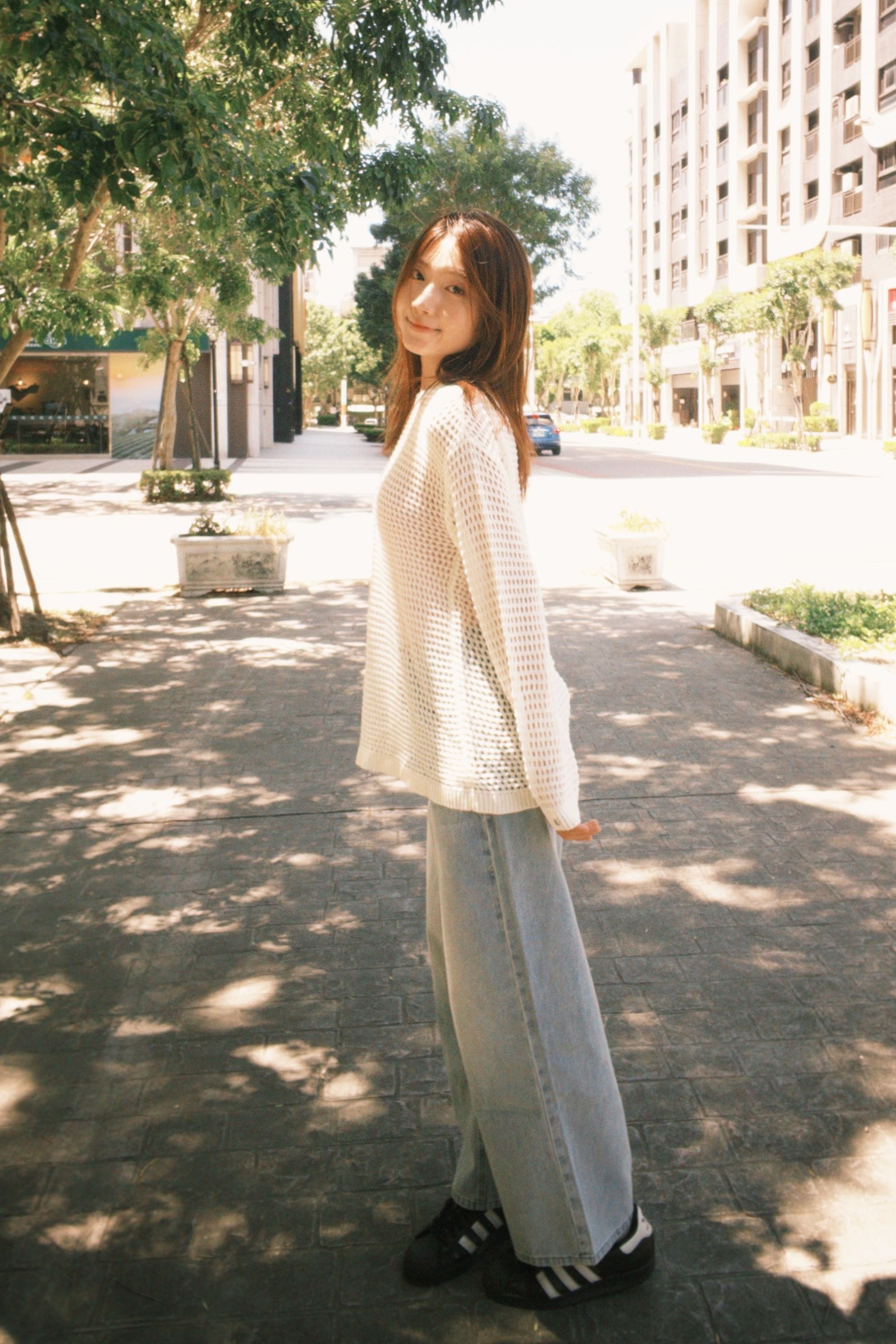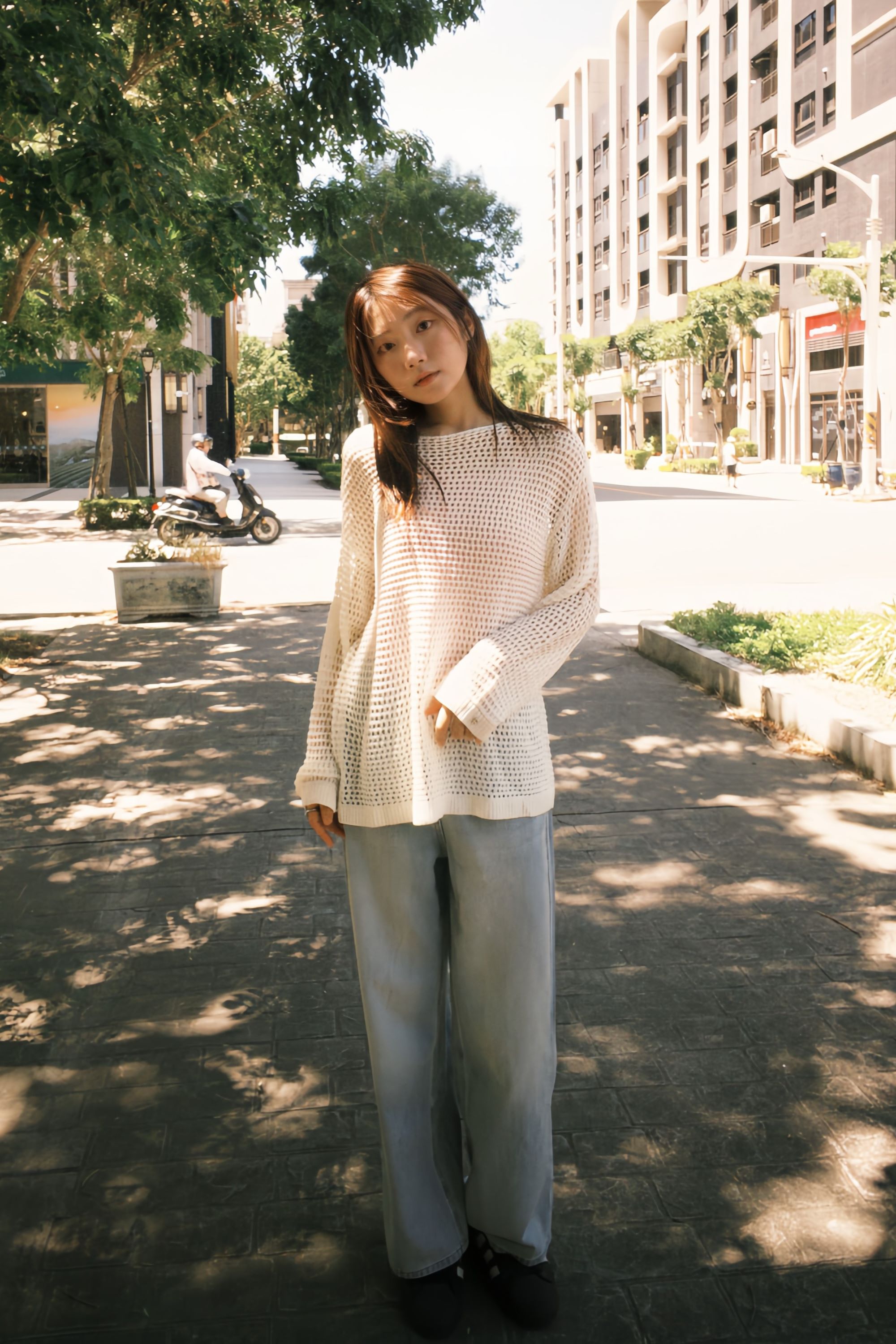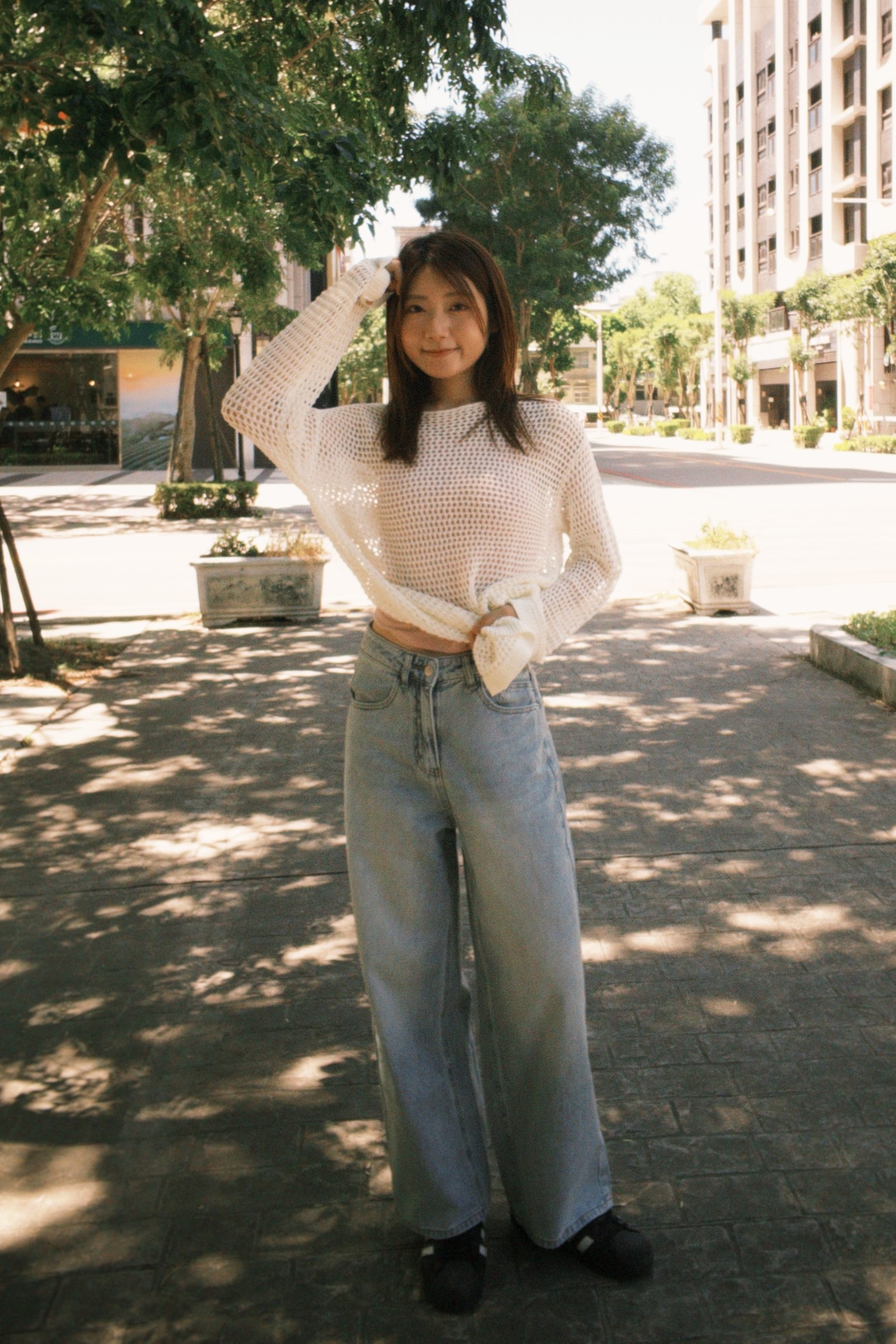 穿搭重點:M系列慵懶一字領針織上衣,M系列自在軟丹寧基本丹寧褲