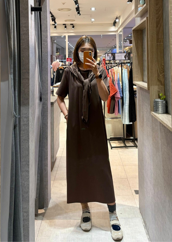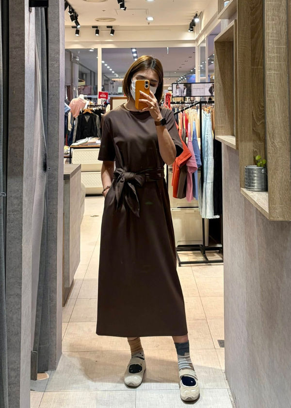 穿搭重點:液態氨柔挺棉-慵懶綁帶洋裝、日常俐落純棉好搭背心