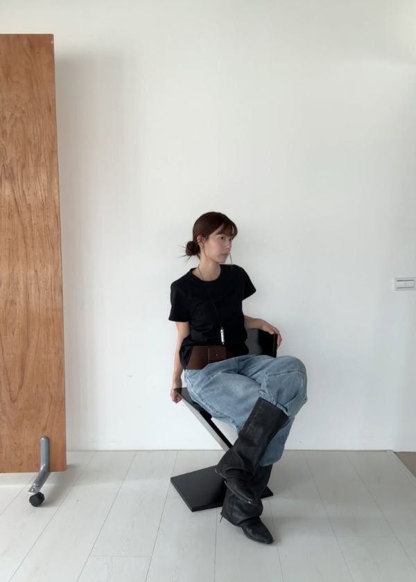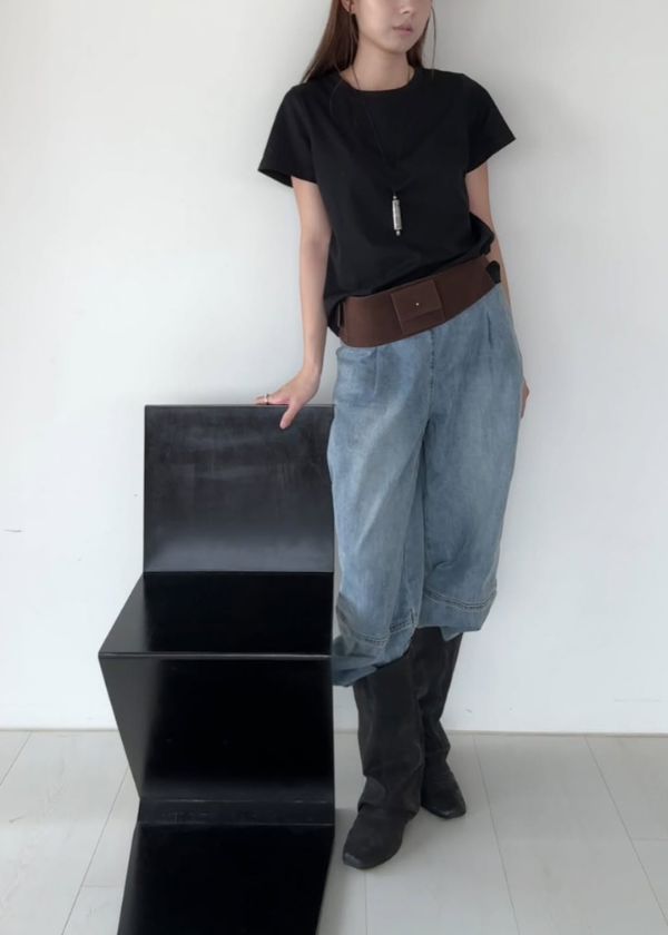 穿搭重點:液態氨柔挺棉-剛剛好基本T恤、森系列水洗軟丹寧氣球褲