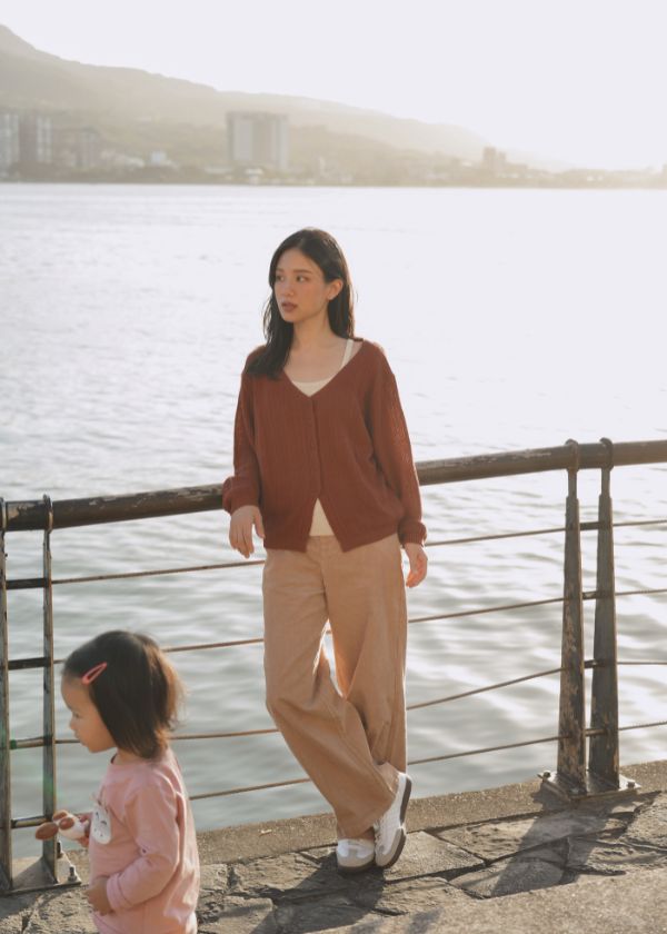 穿搭重點:日常純棉燈心絨長褲 假兩件式氣質針織上衣