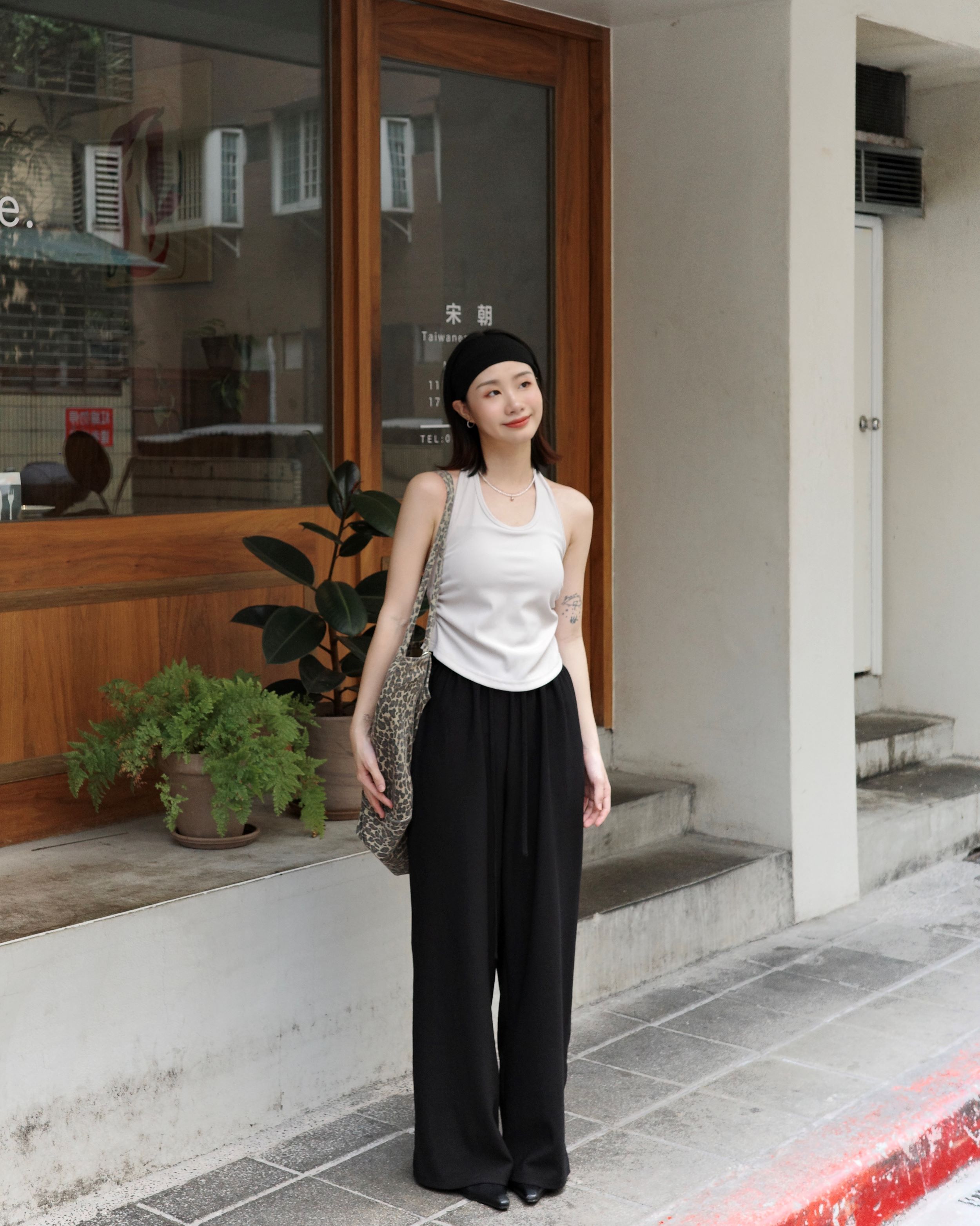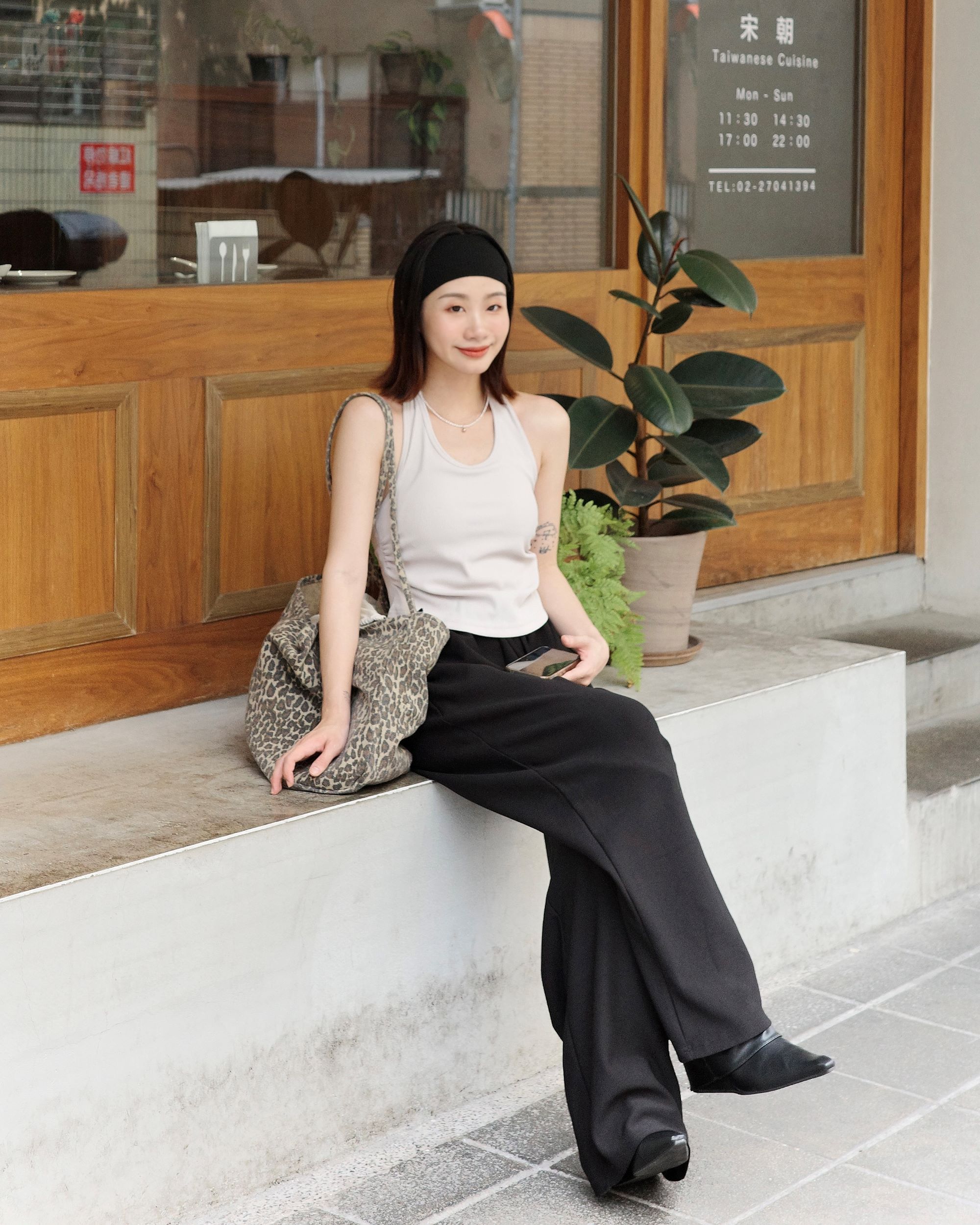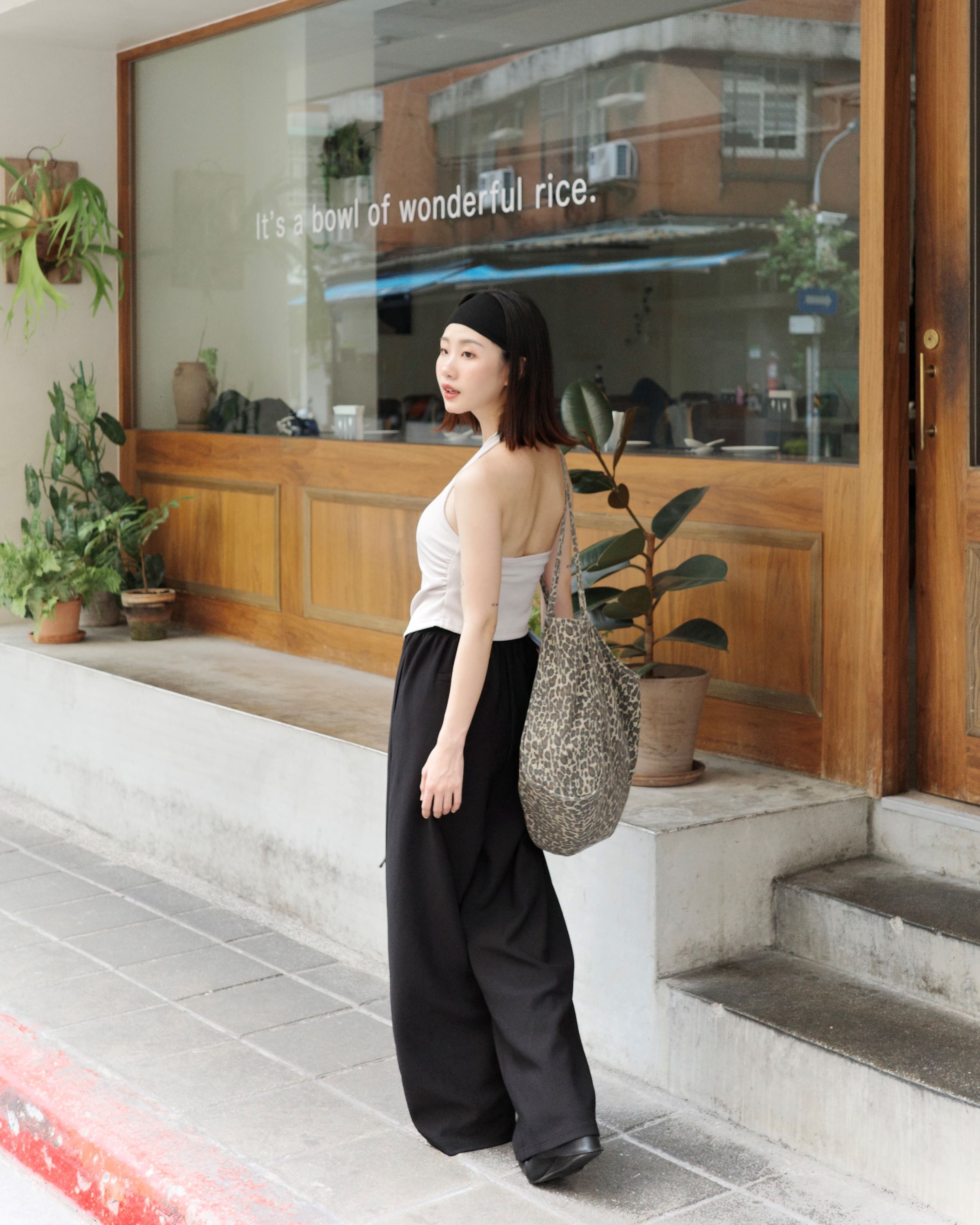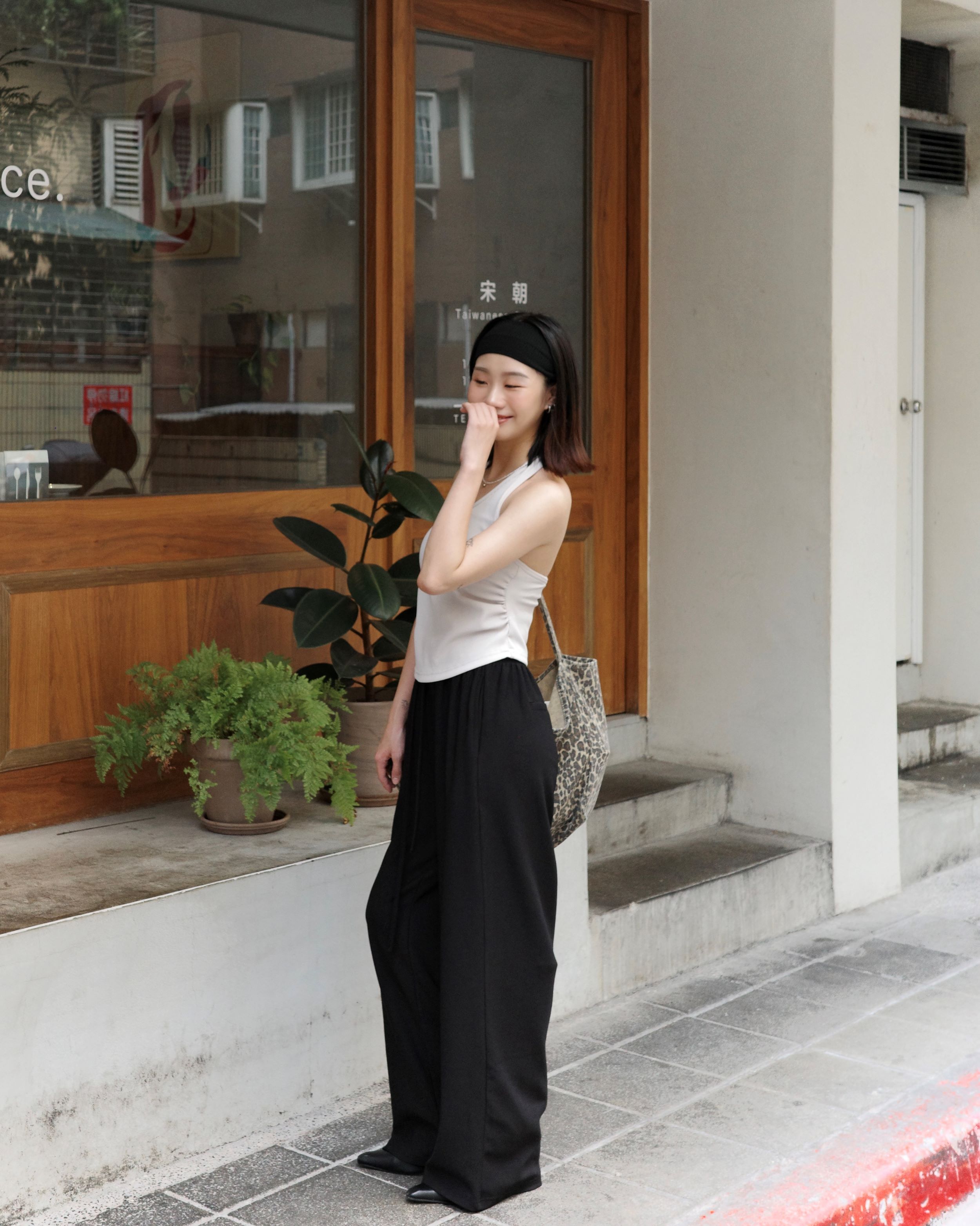 穿搭重點:Creamy.纖瘦包覆繞頸Bratop,上癮!Q彈 輕鬆藏肉冠軍寬褲