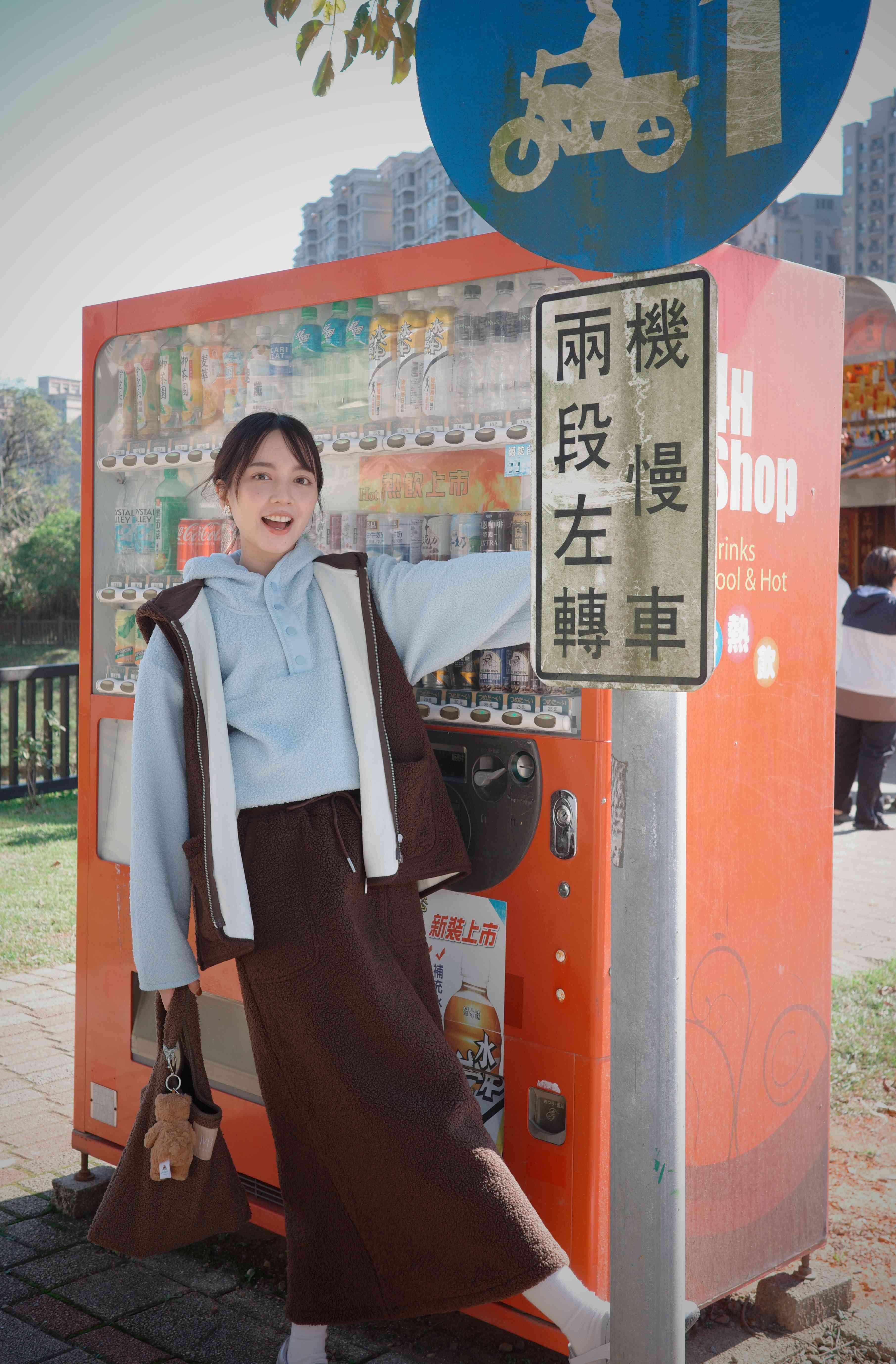 穿搭重點:捲捲毛舒服蕾-連帽口袋大學T、捲捲毛舒服蕾-連帽拉鍊背心、捲捲毛舒服蕾-慵懶長裙、捲捲毛舒服蕾-溫暖心意購物袋